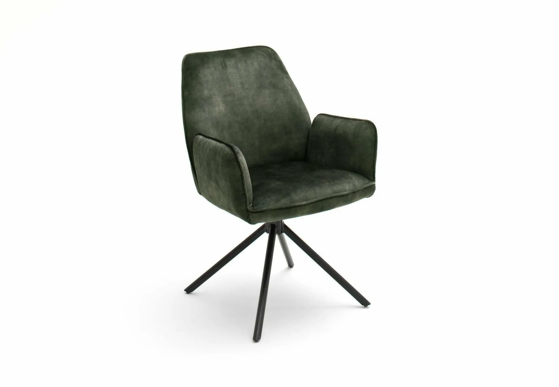 Schaffen Sie eine komfortable und stilvolle Sitzgelegenheit mit dem modernen Armlehnstuhl Malmö der Trendmarke HARPER. Die komfortable Sitzschale ist mit einem samtigen, olivgrünen Stoff in Vintage-Veloursoptik bezogen. Das mattschwarz lackierte Rundrohrgestell steht in edlem Kontrast zum Bezug und verleiht dem Stuhl einen sicheren Stand. Die Sitzbreite und die Sitztiefe betragen ca. 44 cm, die Sitzhöhe liegt bei 46 cm und die maximale Belastbarkeit beträgt 120 kg. Mit zeitloser Eleganz bereichert dieser Stuhl jede Räumlichkeit und verleiht einen Hauch von Farbe.