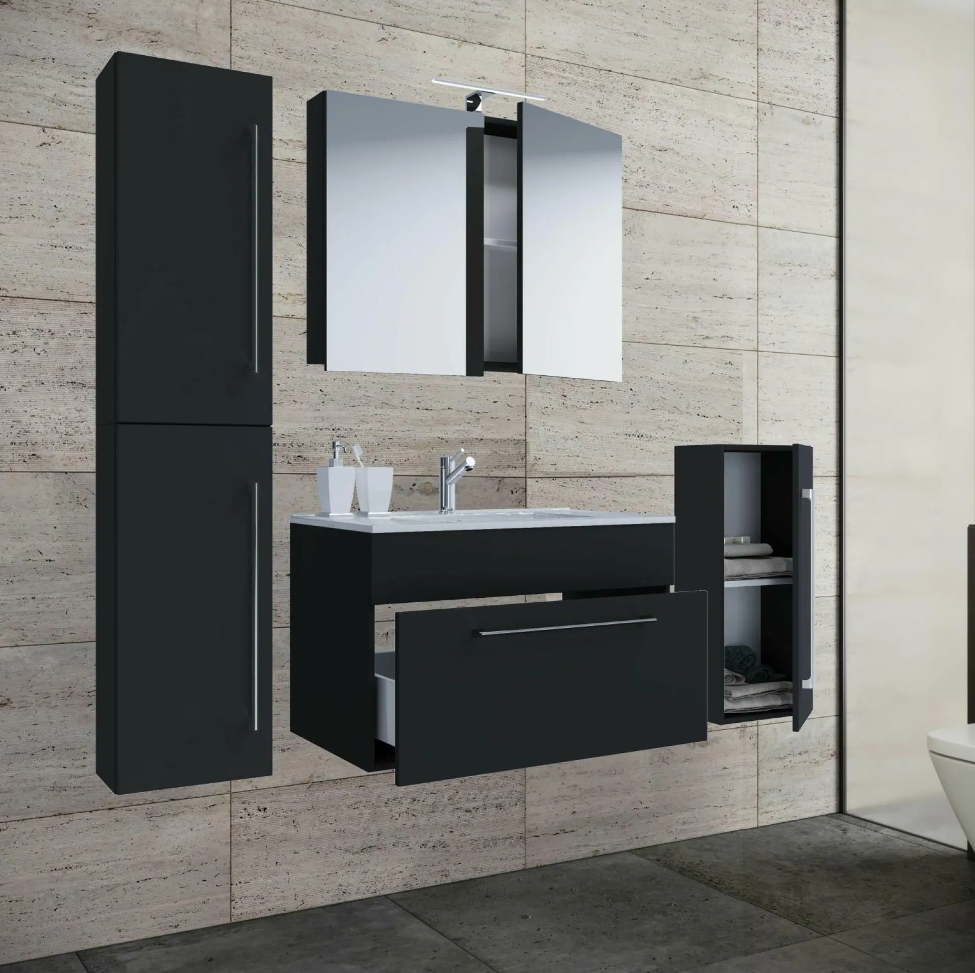 · Das Badmöbel-Set besteht aus einem Unterschrank mit einer leichtgängigen Schublade mit Metallauszügen.