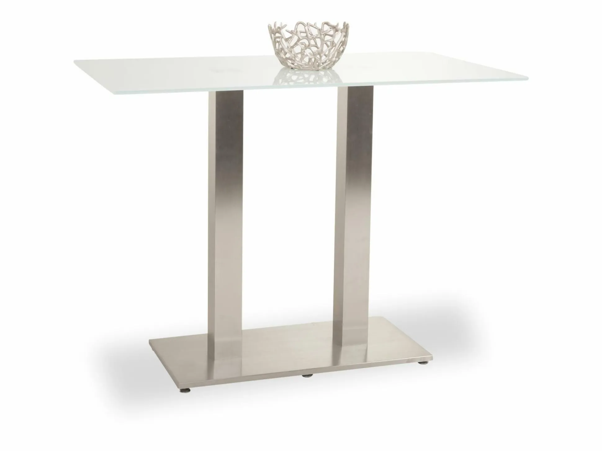 Genießen Sie schöne Stunden zusammen mit Ihren Liebsten an dem Bartisch Tiramo aus dem Hause MONDO. Der Tisch überzeugt mit seinem schicken Design und seiner hochwertigen Qualität. Die Glasplatte steht sicher auf einem Gestell mit zwei Säulen und einer Bodenplatte aus Edelstahl.