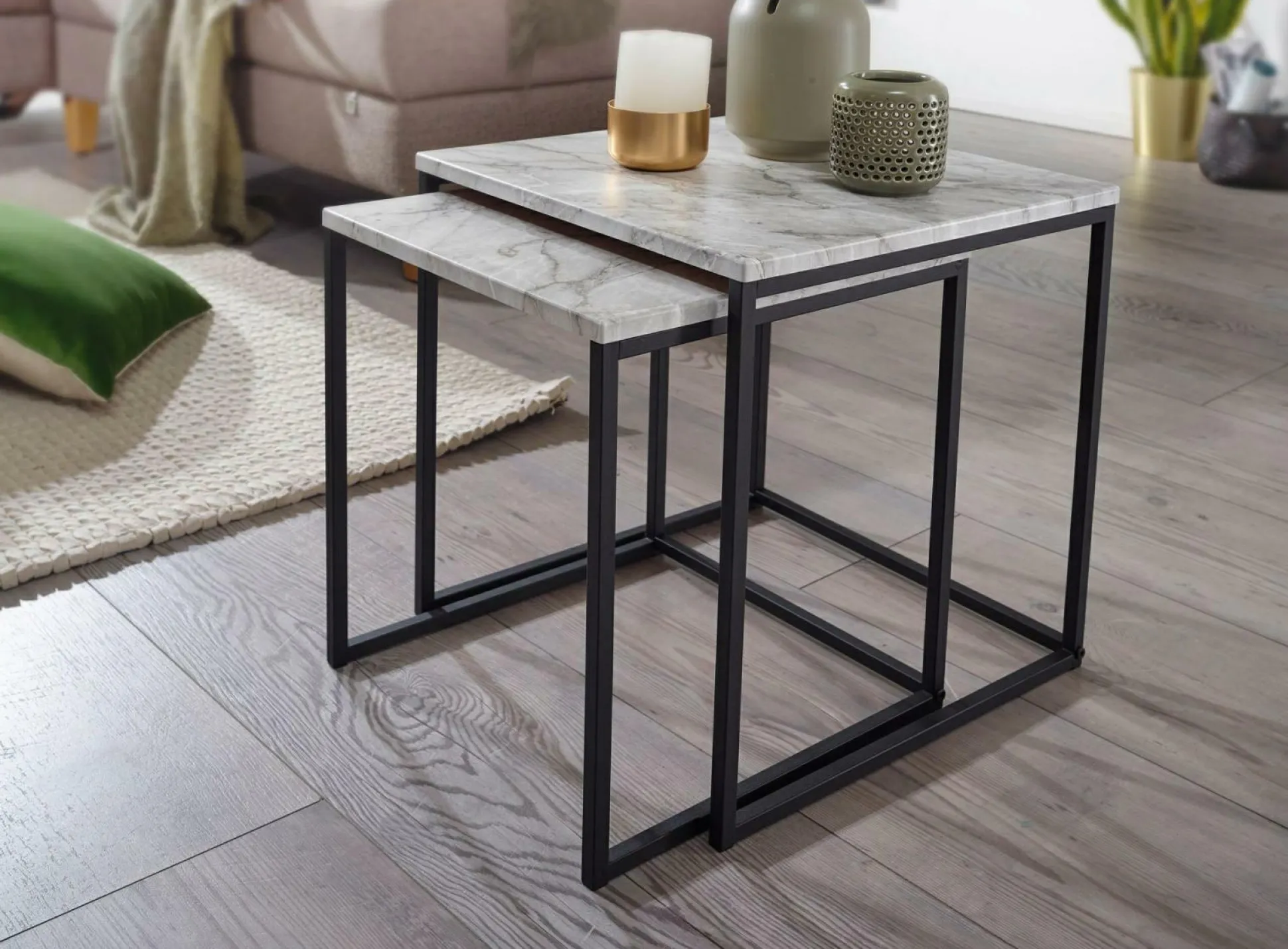 · Blickfang – Dies Anstelltische mit Marmor-Optik sind prima als Sofatisch im Wohnzimmer, als Ablagetisch im Schlafzimmer nutzbar.