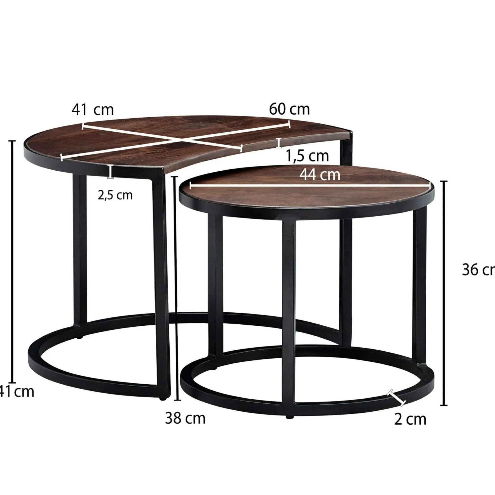 · Abmessungen – Kleiner Tisch (BxHxT): 44 x 36 x 44 cm, Stärke der Tischplatten: 1,5 cm.