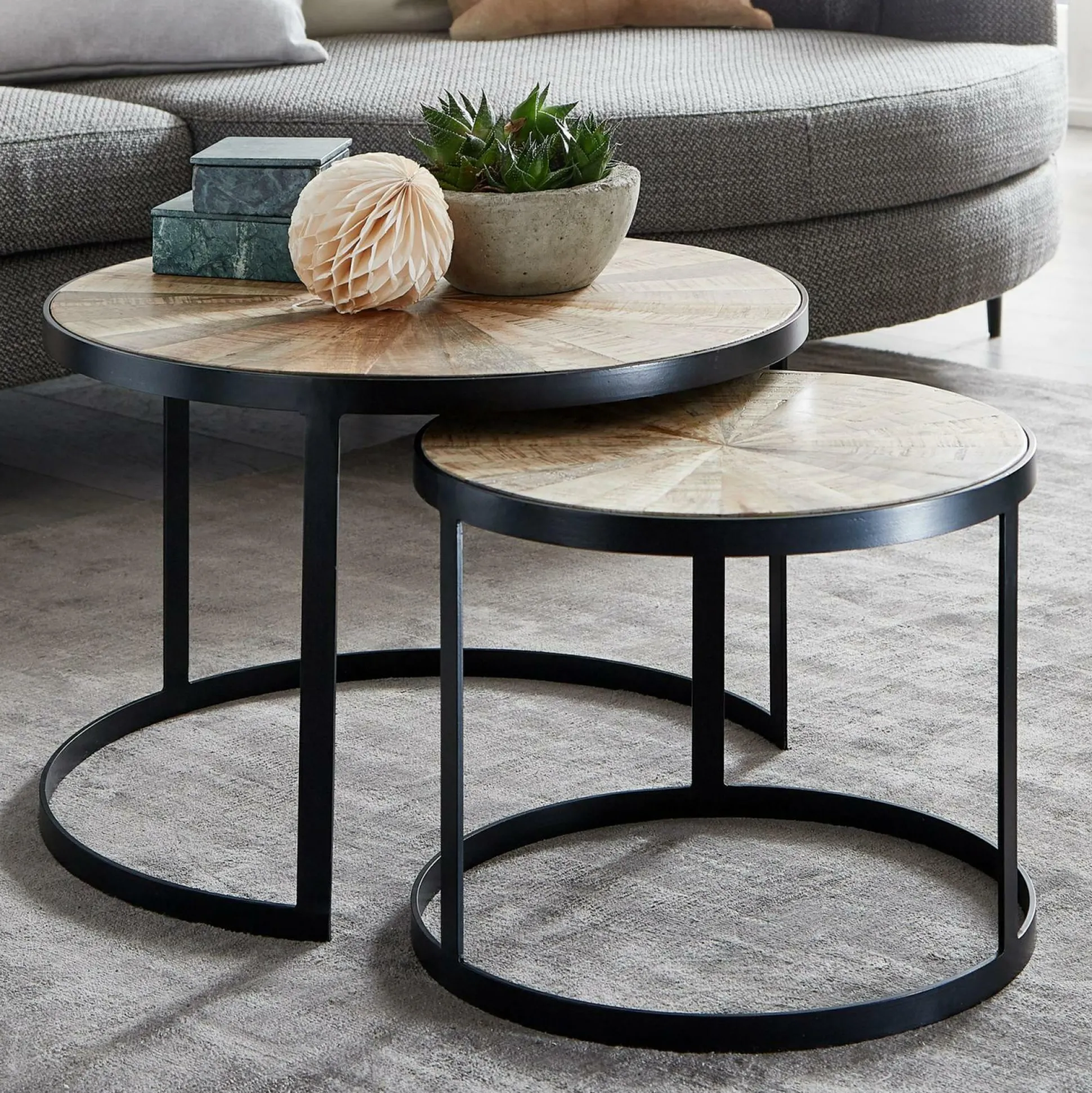 · Lieferumfang – Geliefert wird ein 2er Set Sofatische ohne Dekoration.