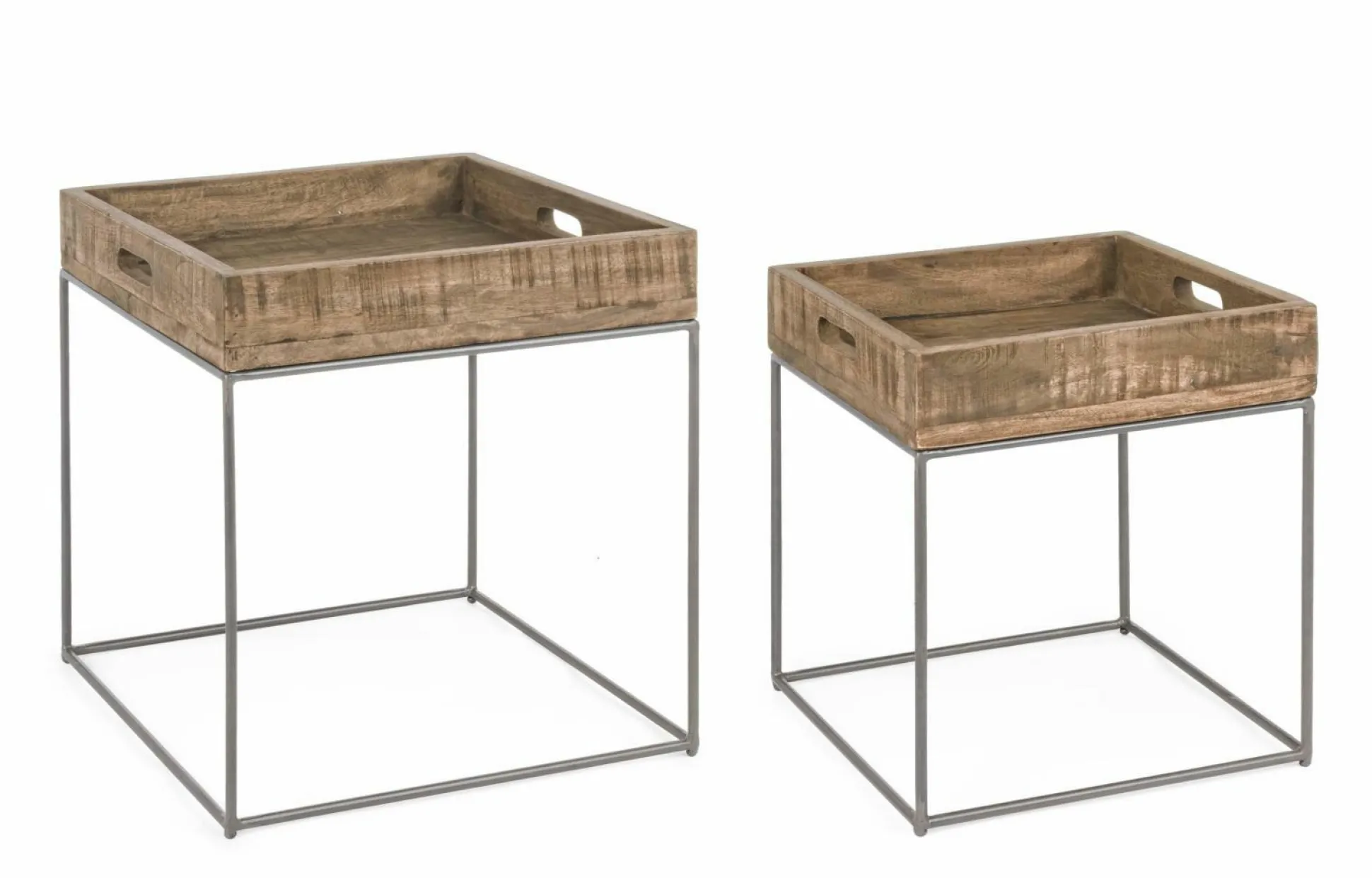 · Beistelltisch mit Gestell aus pulverlackiertem Stahl. Tischplatte aus Mangoholz mit Oberflächenschutz aus Wasserlack.
