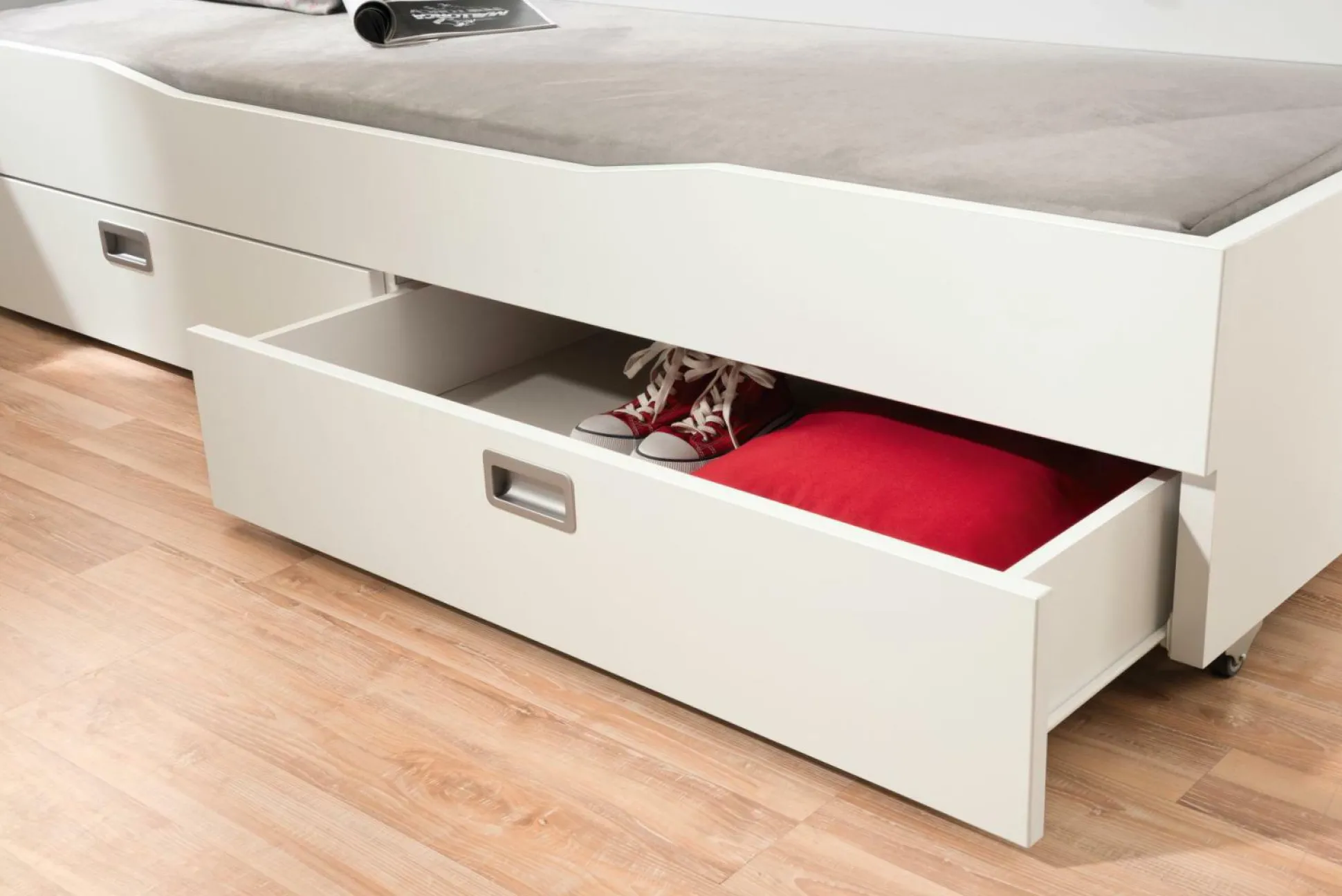 mit Rollen für Teppichboden, kreideweiss, Griff: Chrom matt, für Liege und Etagenbetten