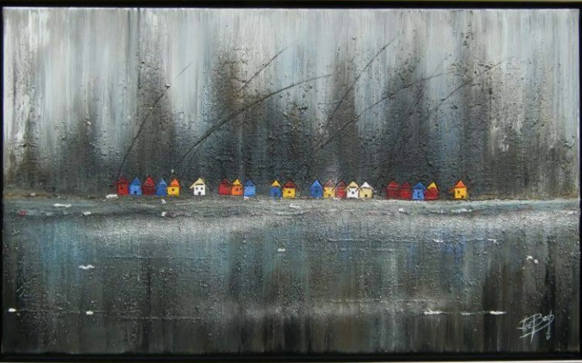 Mit dem Bild abstrakte Häuser setzen Sie an Ihrer Wand einen stilvollen Akzent. Das Original-Holzbild von Lea Bach ist in einer Schattenfugenleiste gerahmt und insgesamt in dezenten Grautönen gehalten. Dazu ist es mit kleinen, bunten Häusern versehen. Durch den Kontrast und das Motiv erzeugt das Bild eine ganz besondere Atmosphäre im Raum und wird zum Hingucker an der Wand.
