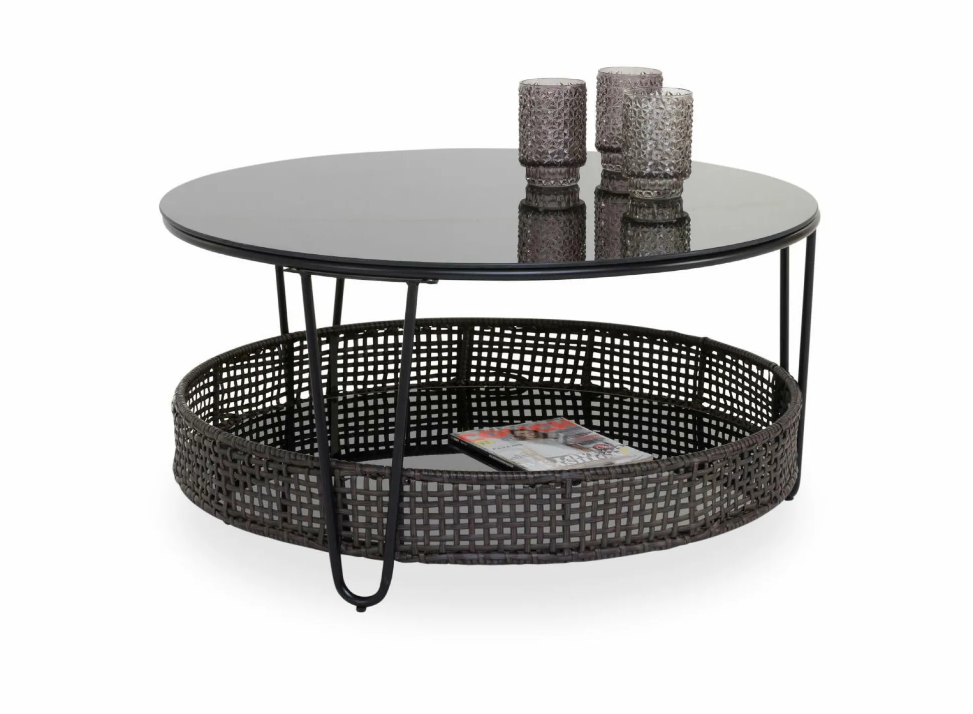 Der Couchtisch SOFIA aus dem Hause M2 KOLLEKTION überzeugt mit einem schicken und modernen Design, dass sich wunderbar in Ihr Zuhause integrieren lassen wird. Mit diesem Tisch holen Sie sich den idealen Begleiter in Ihr Zuhause. Die Deckplatte ist aus schwarzem Glas gefertigt. Die Ablageplatte ist aus gleichfarbigem Material und mit einem Rattangeflechtrand versehen. Zusammen mit dem schwarzen Metallgestell wird ein schicker Look geschaffen.