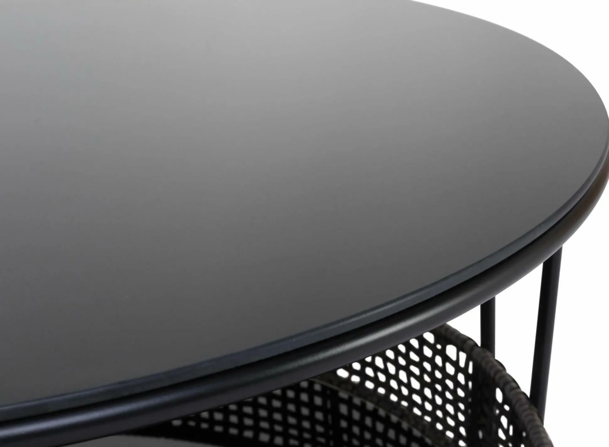 · Ablageplatte: Glas schwarz mit Rattangeflechtrand dunkel