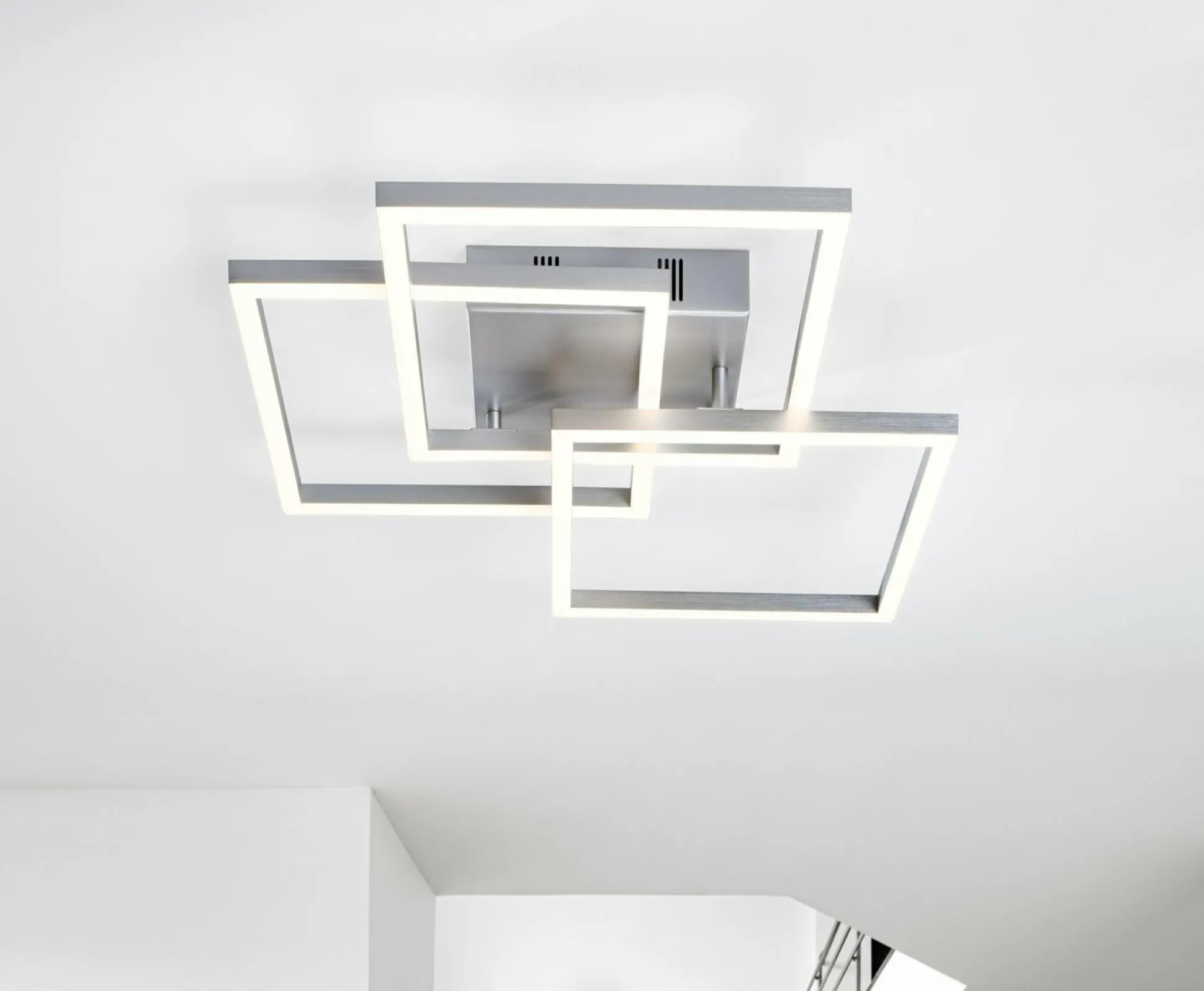 Lassen Sie sich von dieser formschönen Deckenlampe begeistern. In der Lampe werden sämtliche Qualitäten und Highlights, die die Marke casa NOVA mit sich bringt, zusammengeführt. Das hervorragende Aussehen der Deckenleuchte bietet viele Einsatz- und Kombinationsmöglichkeiten und lässt sich perfekt in Ihr modernes Interieur integrieren. Die Deckenlampe aus Metall weist ein Breitenmaß von insgesamt 52 cm auf, besitzt eine Höhe von 9 cm und hat ein Längenmaß von 52 cm. Sie integriert sich hervorragend in jedes Zimmer und kreiert ein wunderschönes Ambiente. Die Deckenleuchte ist an die Aufnahme von Leuchtmitteln mit einem LEDF-Sockel angepasst. Das Gesamtbild Ihrer Einrichtung wird durch diese Deckenleuchte, die schnell den richtigen Platz gefunden hat, ergänzt. Durch die attraktive Lichtwirkung der Lampe entsteht eine heimelige Atmosphäre zum Wohlfühlen.