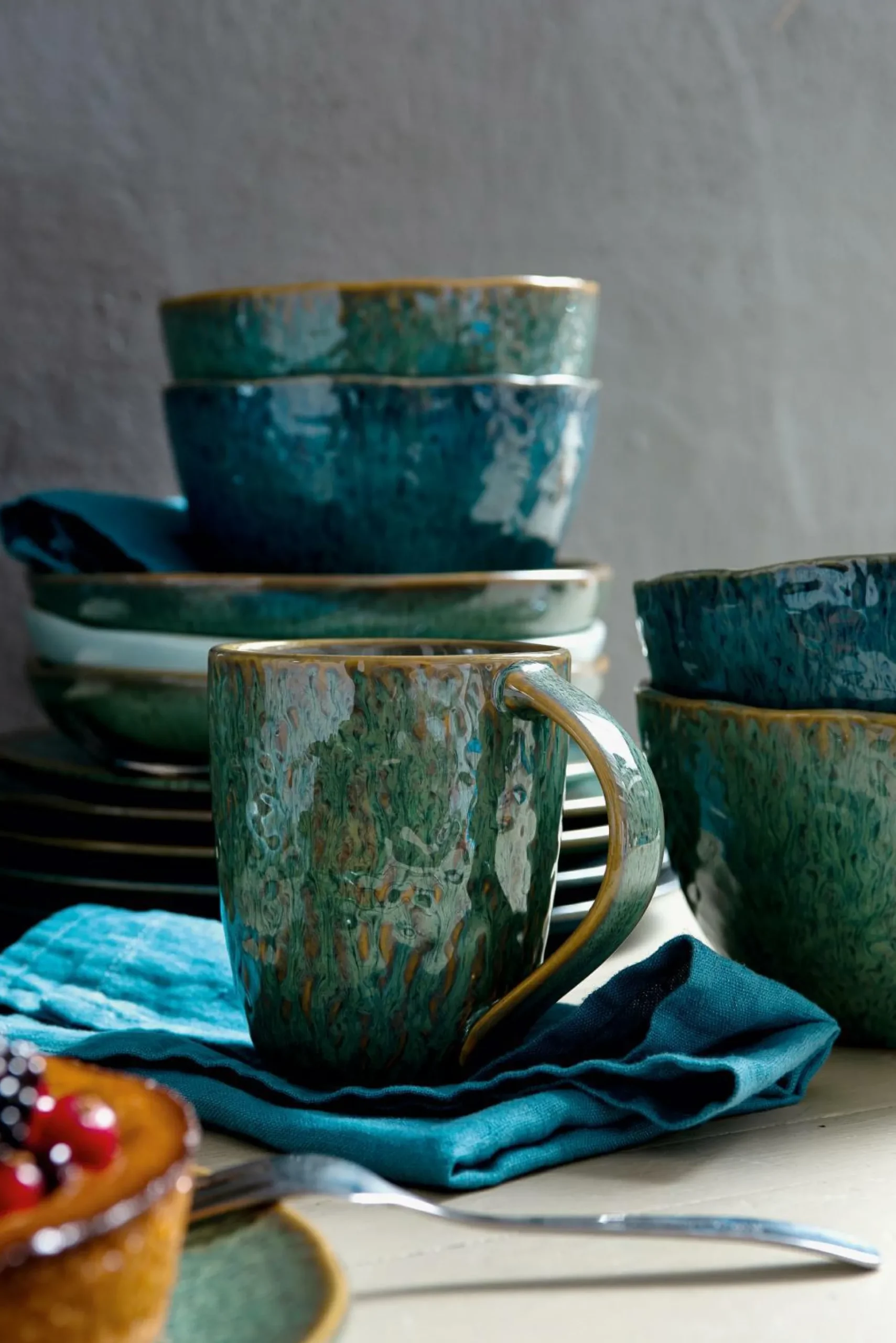 Der Teller Matera von montana: beschreibt ein geschmackvoll inszeniertes Element. Der Keramikteller in Grün ist mit einem dezenten Muster versehen und passt damit in viele Stile auf dem gedeckten Tisch. Auf dem Teller können Sie Lebensmittel ansprechend präsentierten und diesen zu verschiedenen Anlässen nutzen.
