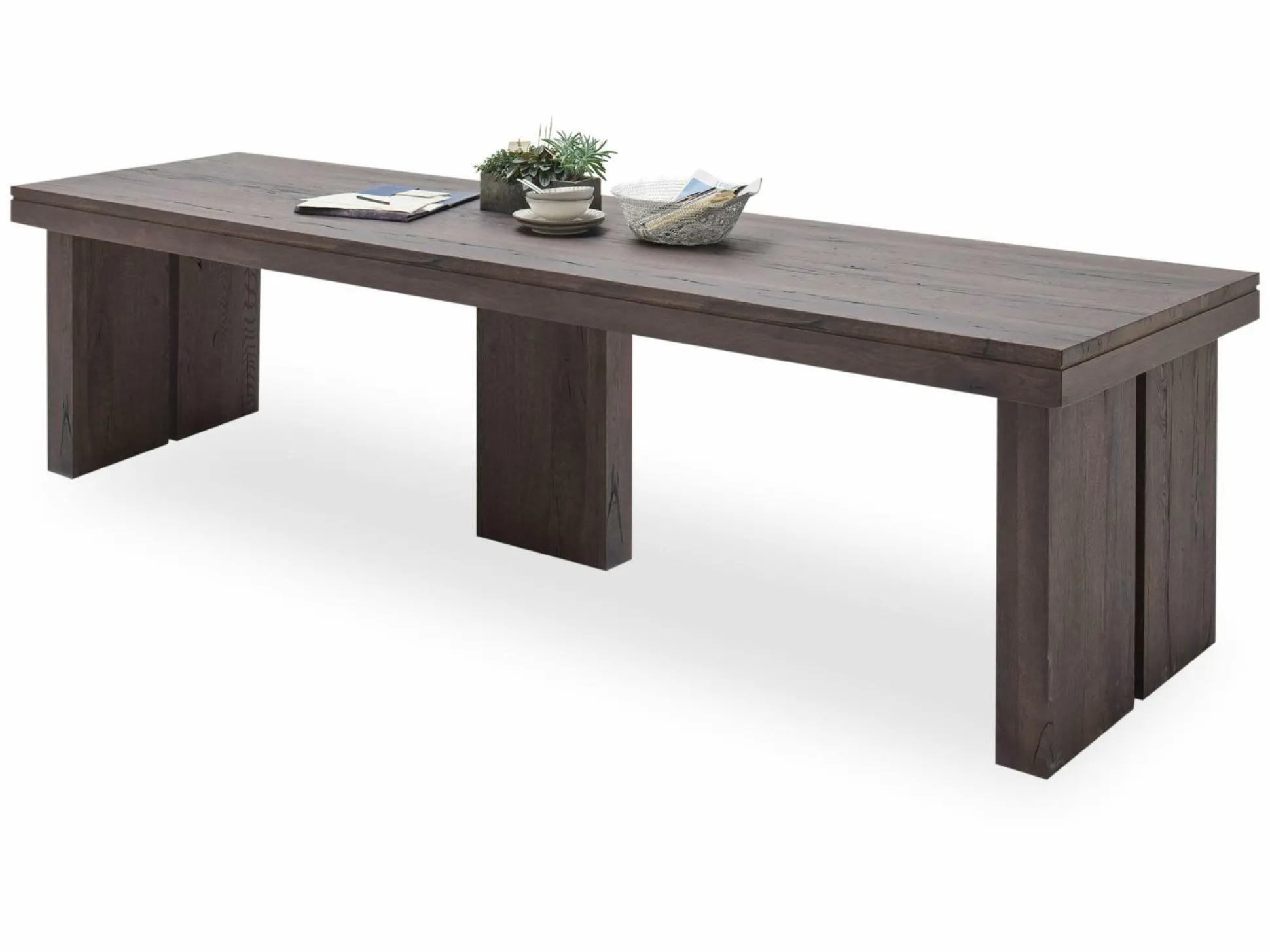 Eine besondere Form und tolles Material – der Esstisch Dublin überzeugt auf ganzer Linie! Insgesamt besteht der Tisch aus verwittertem Braunton und präsentiert dadurch einen natürlichen, aber auch modernen Stil. Durch seine Form und den Tischbeine wird er in Ihrem Esszimmer zum Hingucker. Nehmen Sie mit Ihren Liebsten Platz und genießen Sie leckere Mahlzeiten!