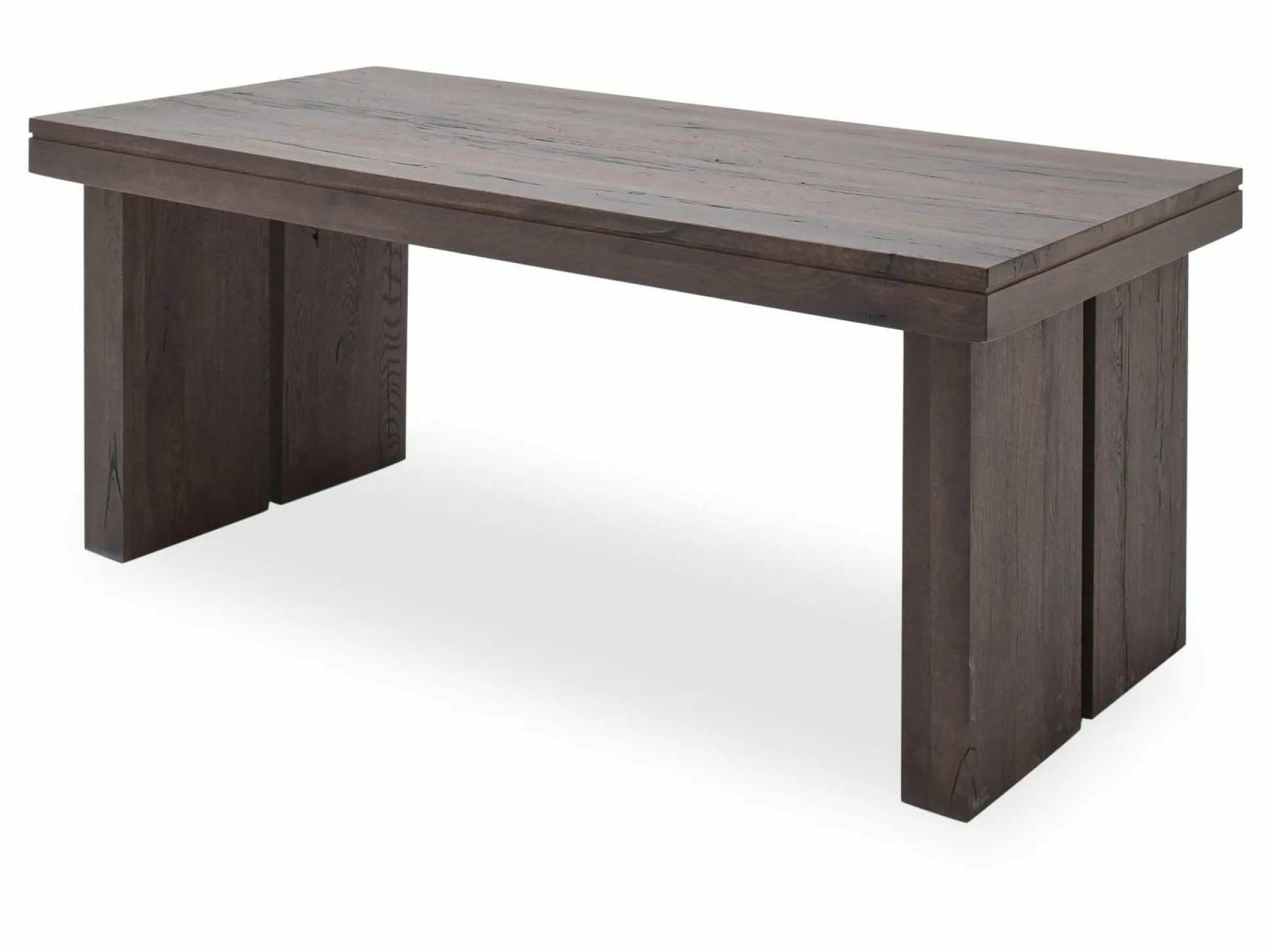 Eine besondere Form und tolles Material – der Esstisch Dublin überzeugt auf ganzer Linie! Insgesamt besteht der Tisch aus verwittertem Braunton und präsentiert dadurch einen natürlichen, aber auch modernen Stil. Durch seine Form und den Tischbeine wird er in Ihrem Esszimmer zum Hingucker. Nehmen Sie mit Ihren Liebsten Platz und genießen Sie leckere Mahlzeiten!