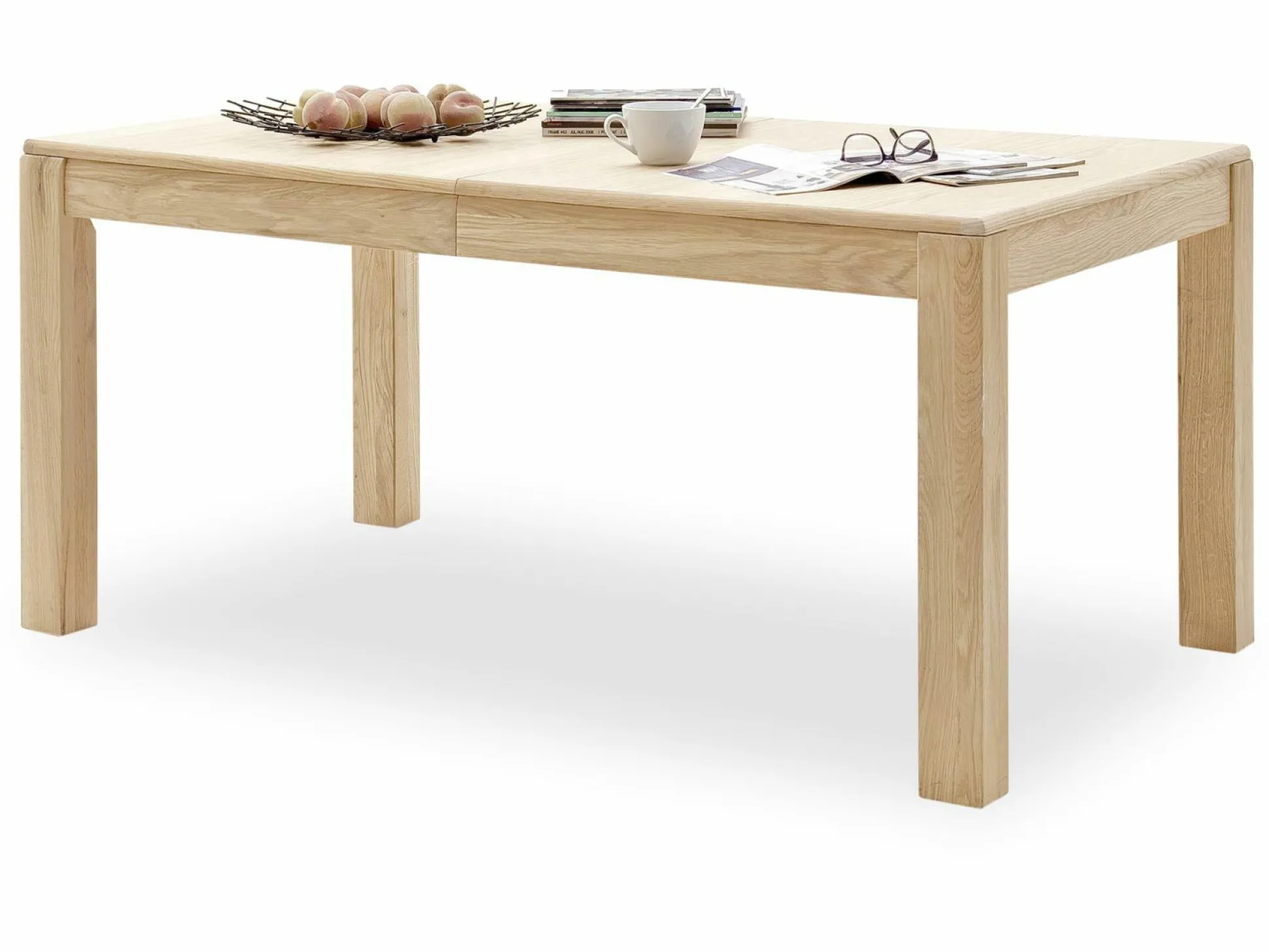 Der vierfüßige Esstisch Tarragona überzeugt mit seiner markanten Form und viel Platz! Insgesamt besteht der Tisch aus geölter Eiche Bianco massiv und präsentiert dadurch einen natürlichen, aber auch modernen Stil. Durch seine geradlinige, kantige Form wird er in Ihrem Esszimmer zum Hingucker und bietet Ihnen eine große Tischplatte. Dabei ist der Tisch 160 cm breit und kann sogar nach Bedarf auf 260 cm ausgezogen werden. Nehmen Sie mit Ihren Liebsten Platz und genießen Sie leckere Mahlzeiten!