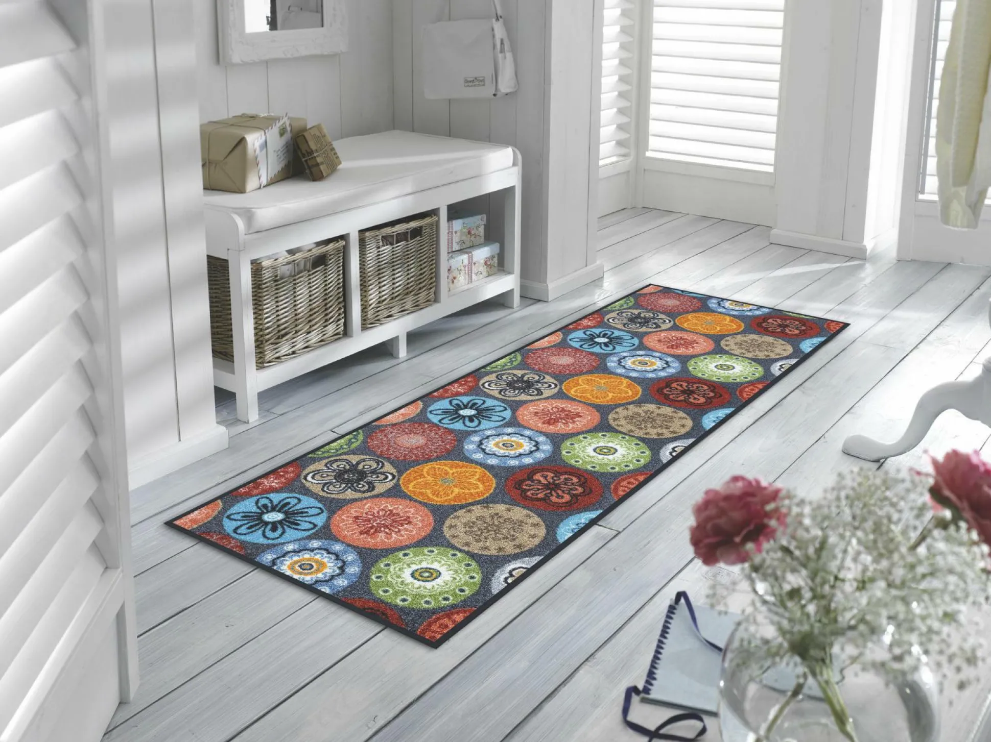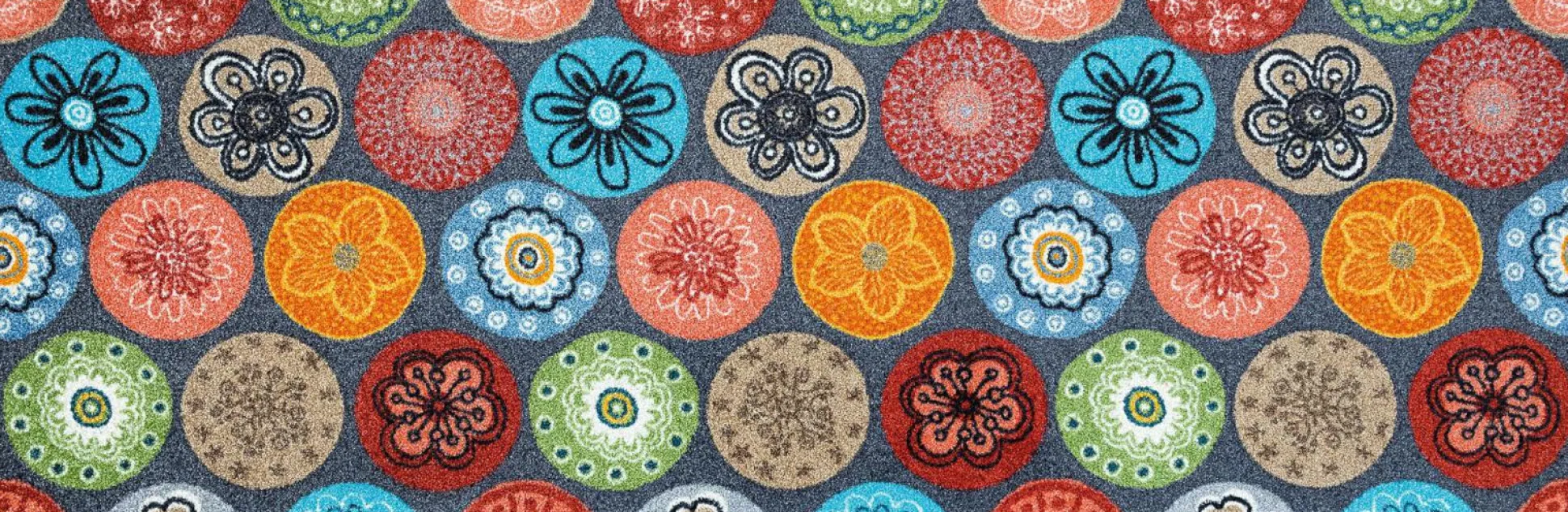 Mit der Fußmatte Coralis bringen Sie ein farbenfrohes Element in Ihren Eingangsbereich. Diese auffällig gestaltete Fußmatte sorgt mit den bunten Motiven für einen echten Hingucker, ist darüber hinaus einfach zu pflegen, flach und dicht im Flor sowie trittschalldämmend und rutschfest. Durch die flache Gestaltung passt die Matte unter fast jede Tür. Zudem überzeugt die Fußmatte durch Farbbrillianz sowie Farb- und Lichtechtheit. Waschbar bis 60 ° C.
