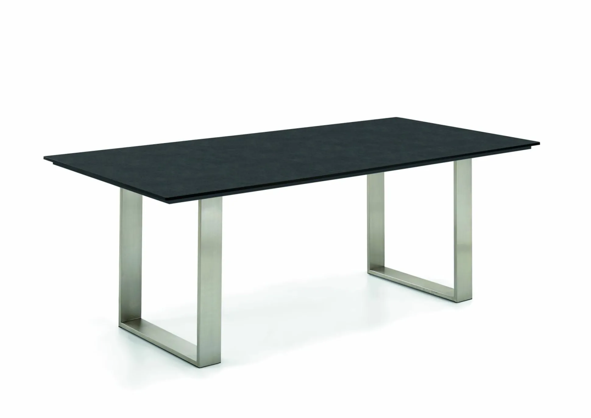 · Tisch NOAH Tischplatte HPL Granit, Gestell Profilkufe Edelstahl gebürstet.