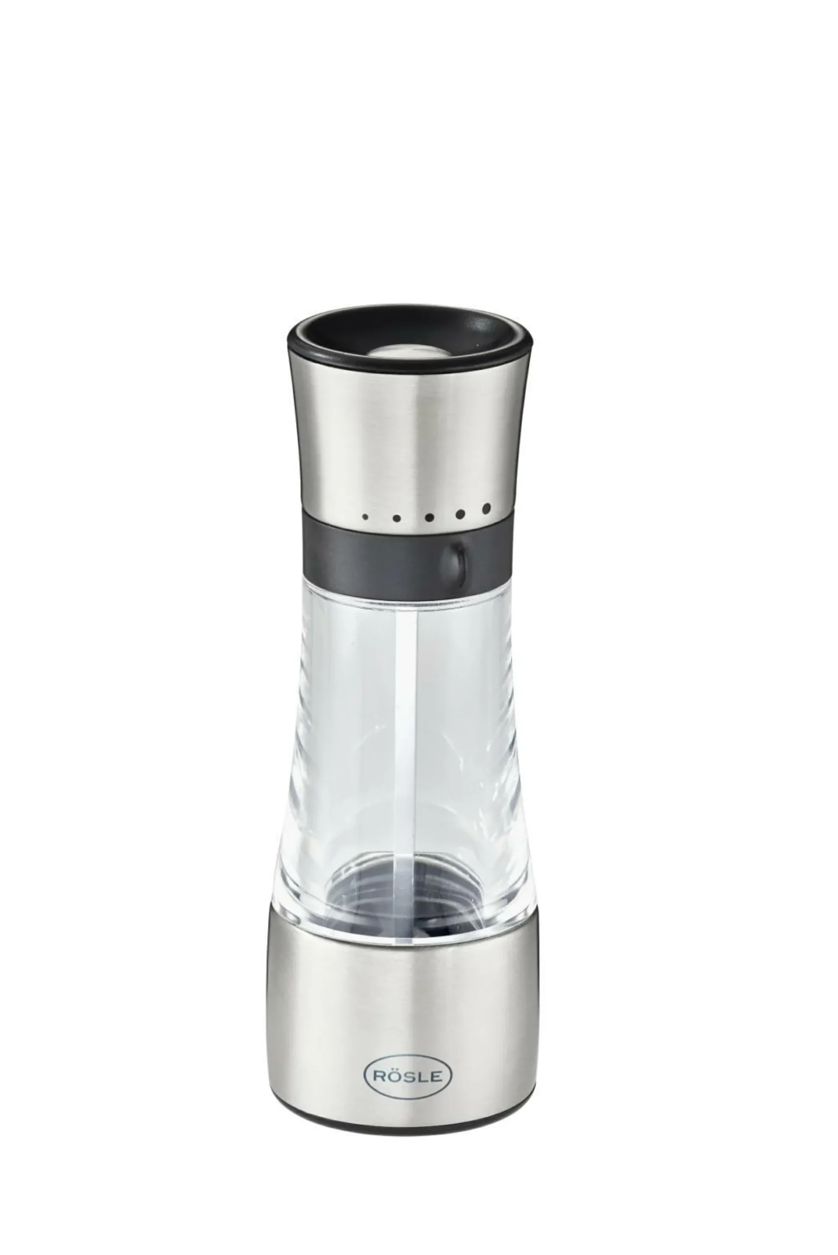 · Mit der RÖSLE Gewürzmühle können Speisen mit einem Dreh verfeinert und vollendet werden. Je nach Wunsch in 5 verschiedenen Mahlgrad-Stufen. – Robustes Keramik-Mahlwerk und Edelstahlgehäuse, – 5 Mahlgrad-Stufen von fein bis grob einstellbar – Zum Mahlen von grobem Salz oder Pfefferkörnern, sowie allen Arten von trockenen Gewürzen