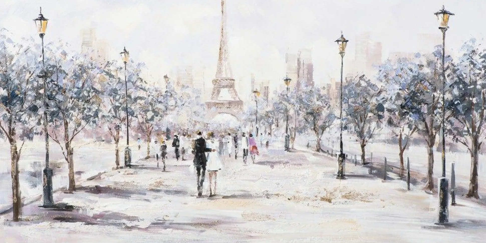 Das originale Leinwandbild PARIS auf Holzrahmen wird eine schön romantische Stimmung in Ihrem Raum erzeugen. Ein Pärchen läuft händchenhaltend in einem Park auf den Eifelturm zu. Vor allem durch die sanften Farben und das idyllische Motiv setzt dieses Bild einen liebevollen Akzent an der Wand.