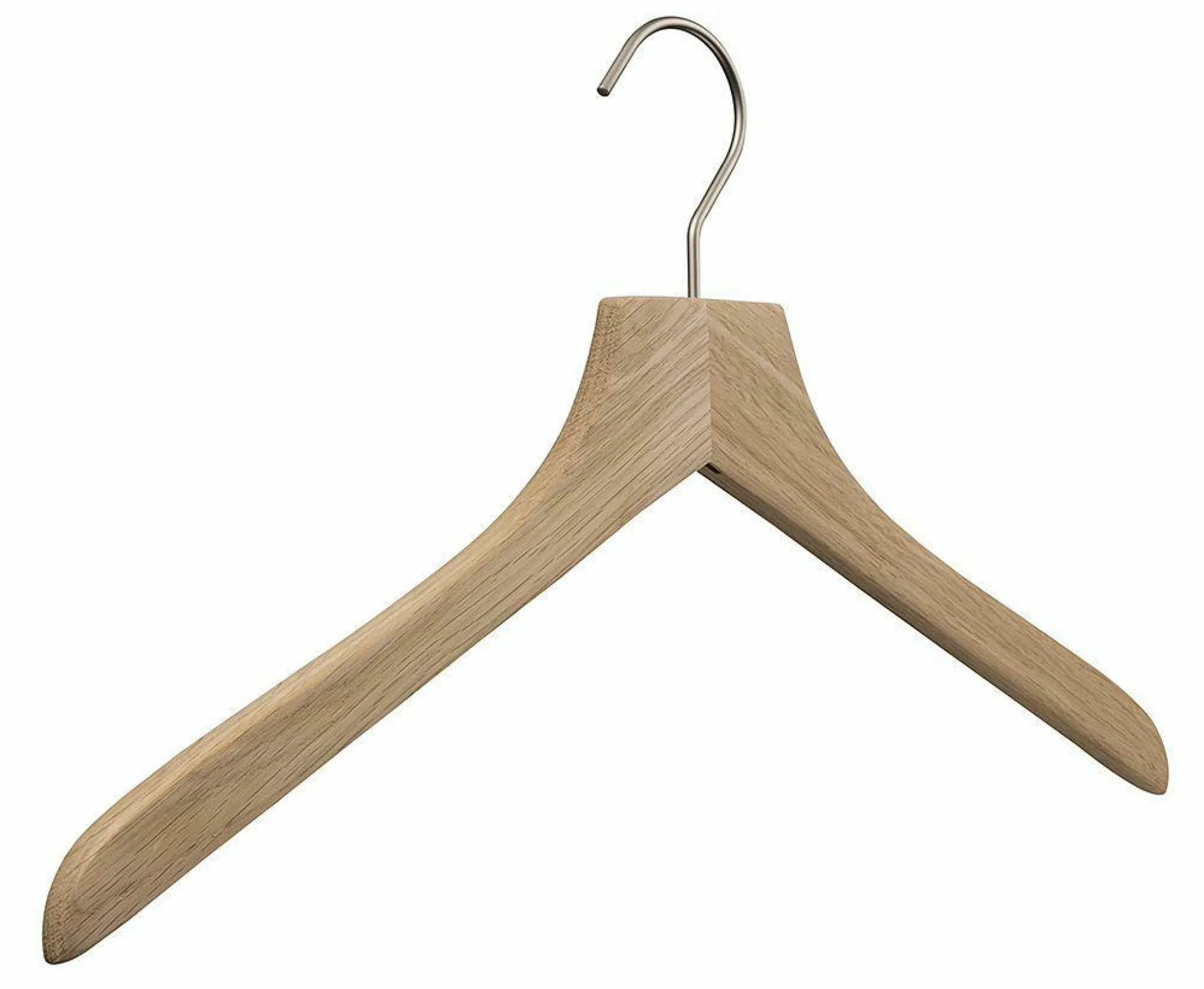 Kleiderbügel kann man einfach nicht genug haben – mit dem Kleiderbügel PRIME OAK aus roh geschliffener Eiche Natur bleibt Ihre Kleidung jederzeit sauber wie ordentlich aufgehängt an der Stange. Der matt-silberne, robuste Haken garantiert hierfür genügend Stabilität.