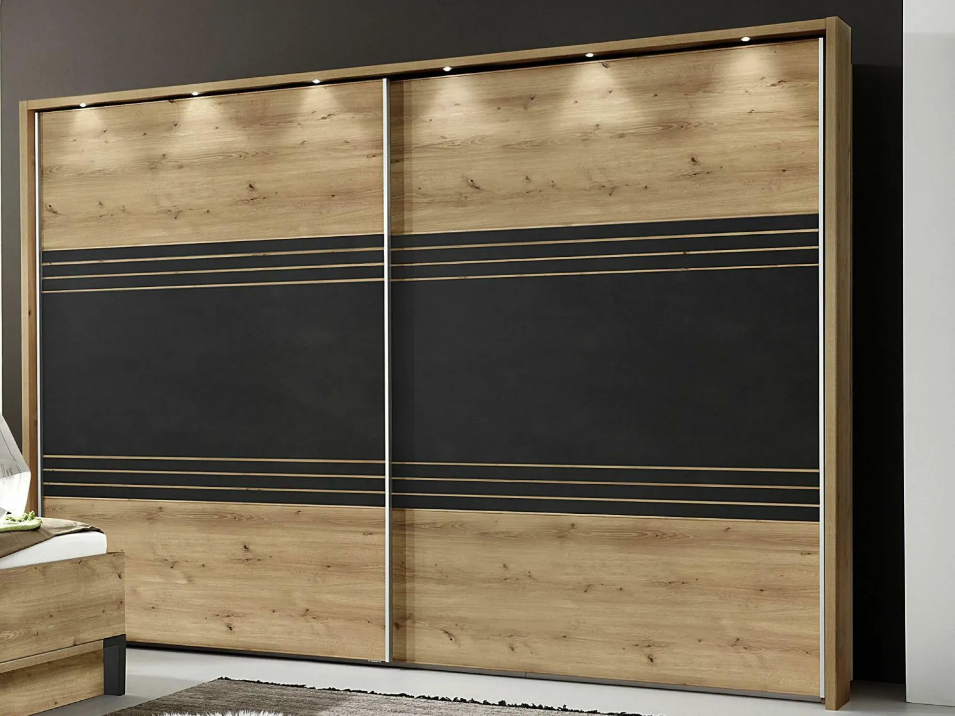 · Schwebetürenschrank 2-trg., mit 3 Fächern á 96,4 cm