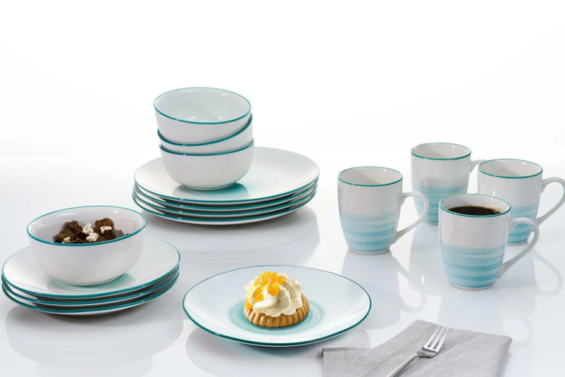 Dank dieses Kombiservice kann jedes Gericht wie im 3-Sterne-Restaurant angerichtet werden. Holen Sie sich mit dem Service die Ritzenhoff-&-Breker-Markenqualität nach Hause. Das LUNA ist türkisfarben. Mit diesem Geschirrservice können Sie es sich schmecken lassen.