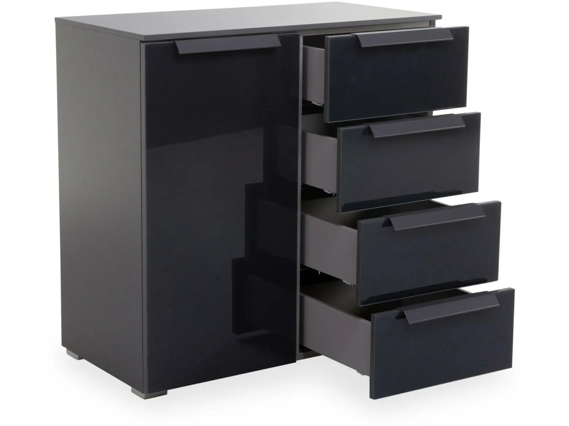 · mit einer Tür und vier Schubkästen