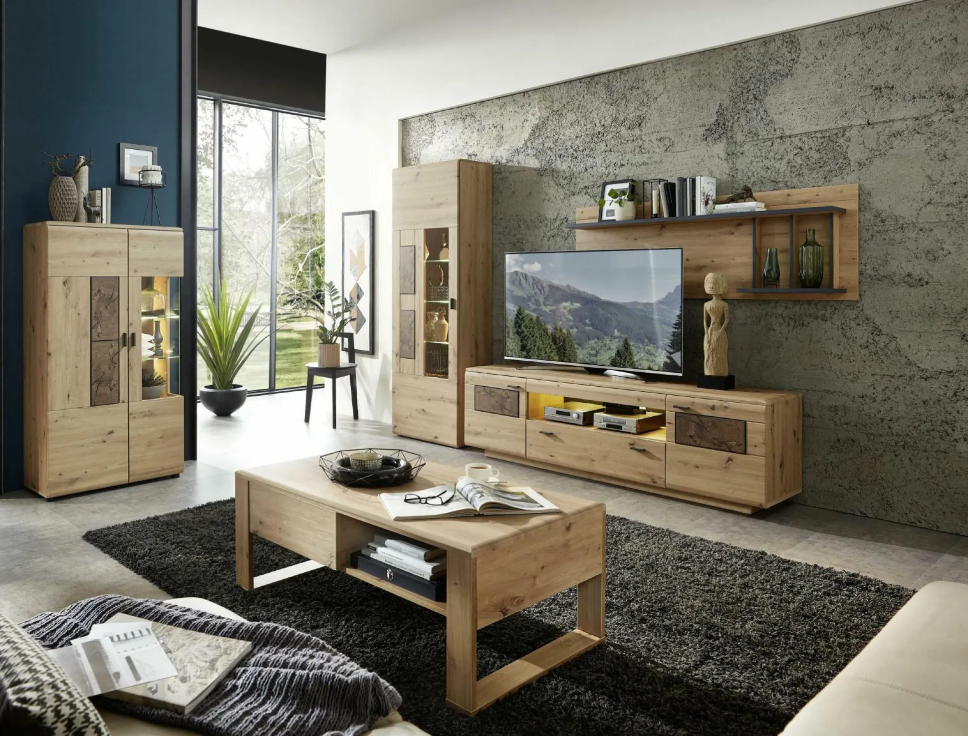 Mit dem Lowboard Lavado aus dem Hause vito verbinden Sie Stilbewusstsein mit Ordnung und Platz. Das wohnliche Design ergänzt nahezu jedes Wohnkonzept und schafft dabei ein kleines Highlight in Ihrem Wohnbereich. Sowohl der Korpus als auch die Front sind aus Artisan Eiche Nachbildungen gefertigt. Die Front wird dabei durch Absetzungen aus Hirnholz vervollständigt. Die Griffe aus graphitfarbigem Metall runden den Gesamtlook perfekt ab. Damit Sie das Zubehör für Ihren Fernseher kinderleicht verstauen können, ist die Kommode mit zwei Holztüren, einer Schublade und einem offenen Fach ausgestattet. Damit Sie Ihr liebstes Hab und Gut gekonnt in Szene setzen können, ist auf Wunsch Beleuchtung erhältlich.