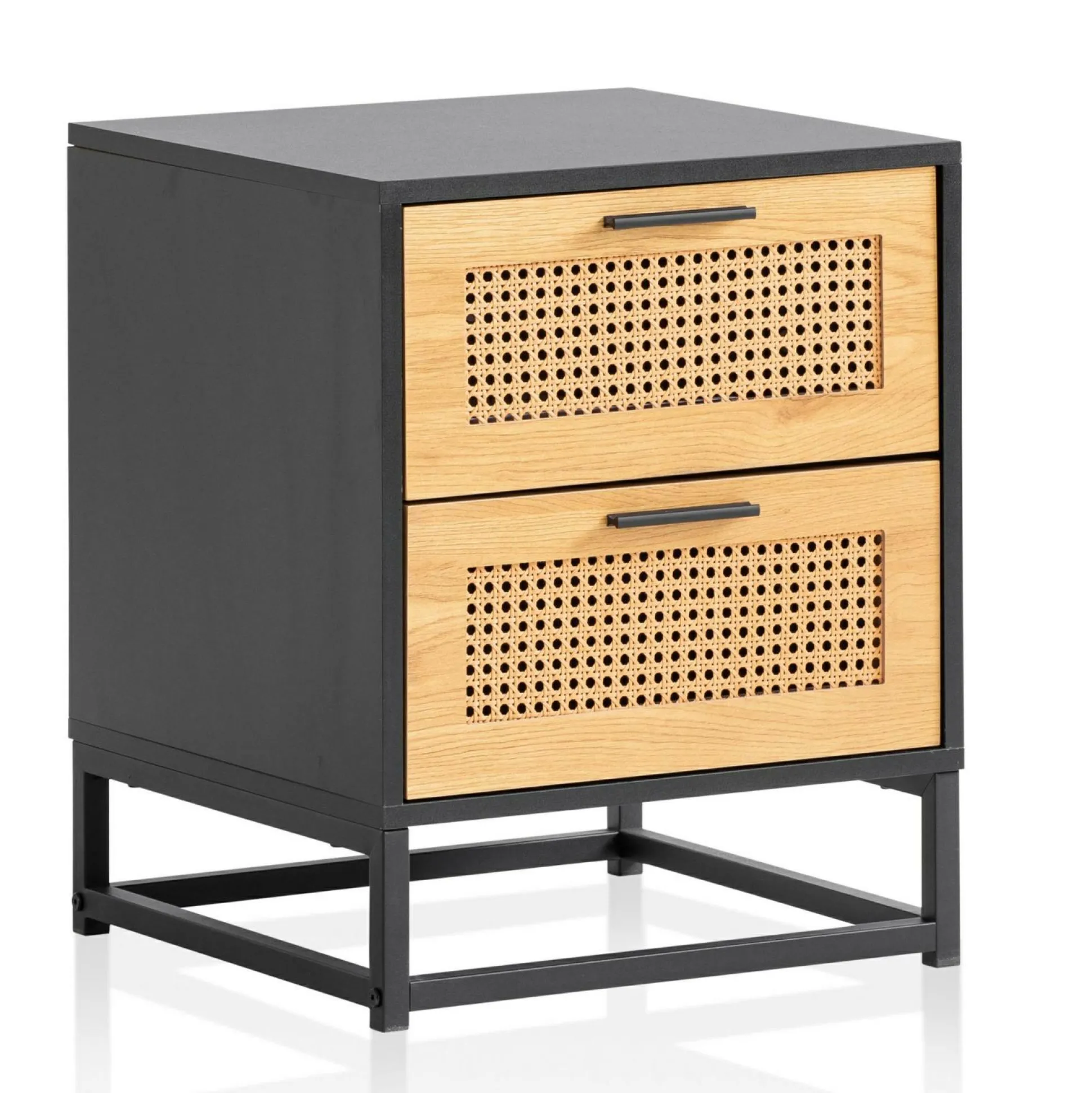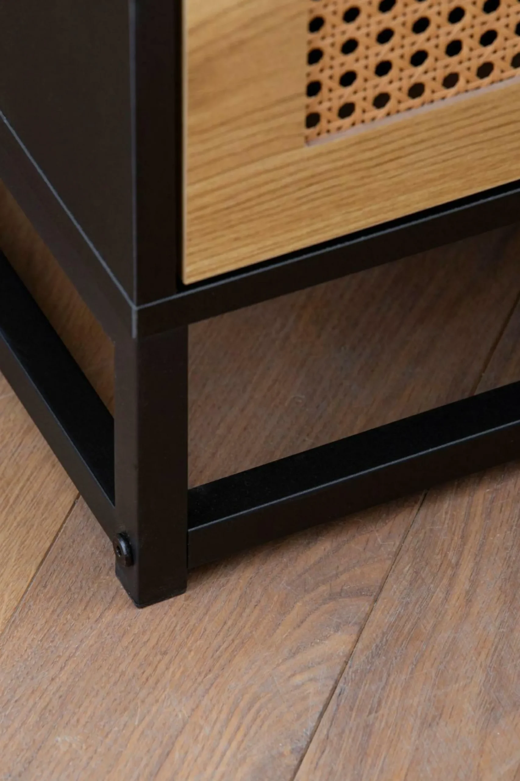 · Material – Korpus und Schubladenrahmen: foliertes MDF, mit Melaminharz beschichtet // Wiener Geflecht: Polyrattan // Beine: pulverbeschichtetes Eisen.