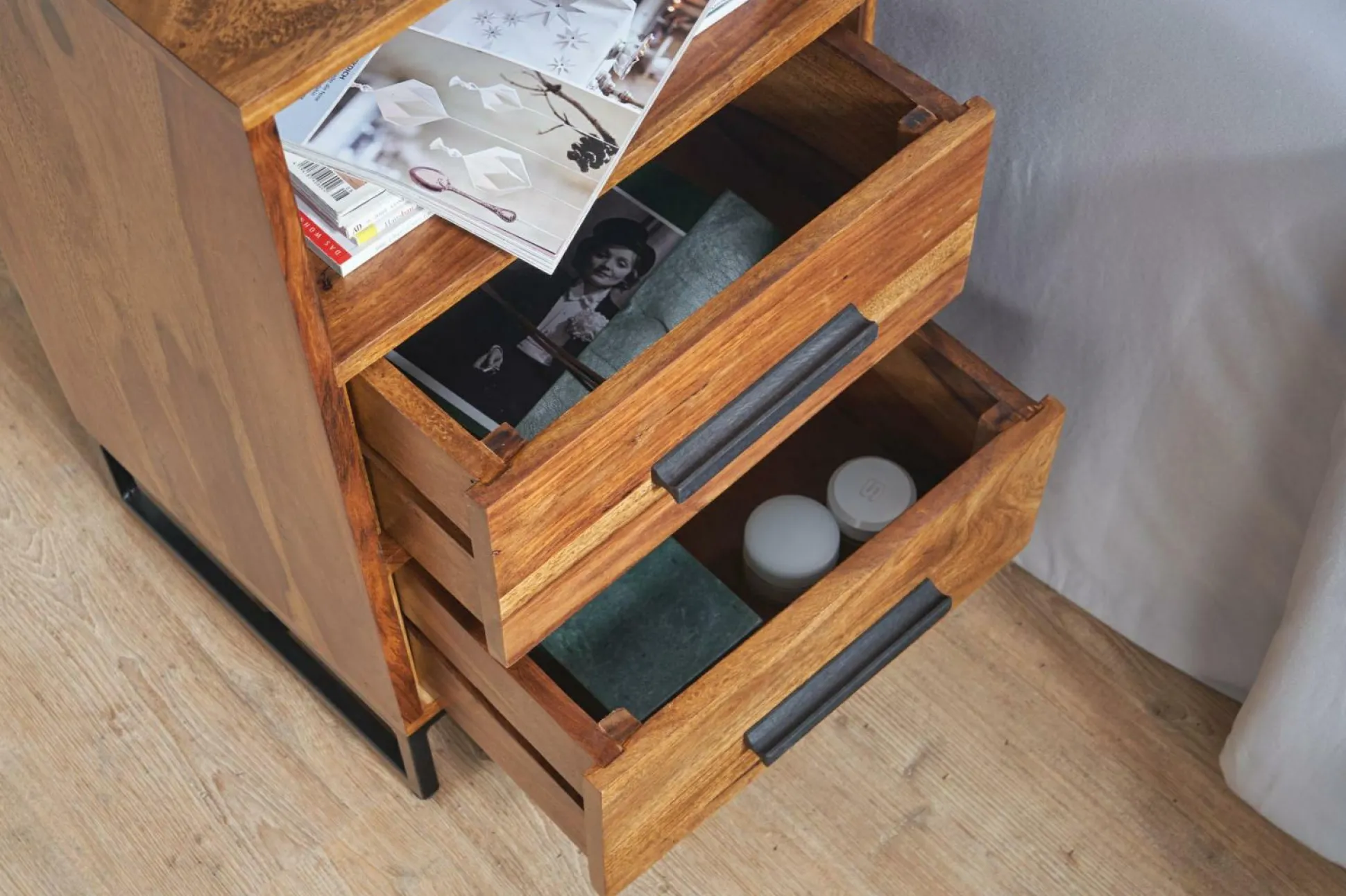 · Abmessungen – Innenmaße je Schublade (BxHxT): 31 x 13 x 24,5 cm, Innenmaße Ablagefach (BxHxT): 37 x 17 x 35 cm.