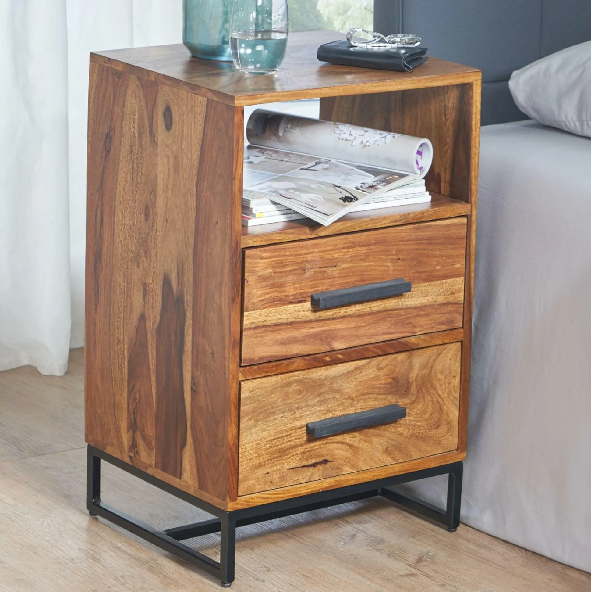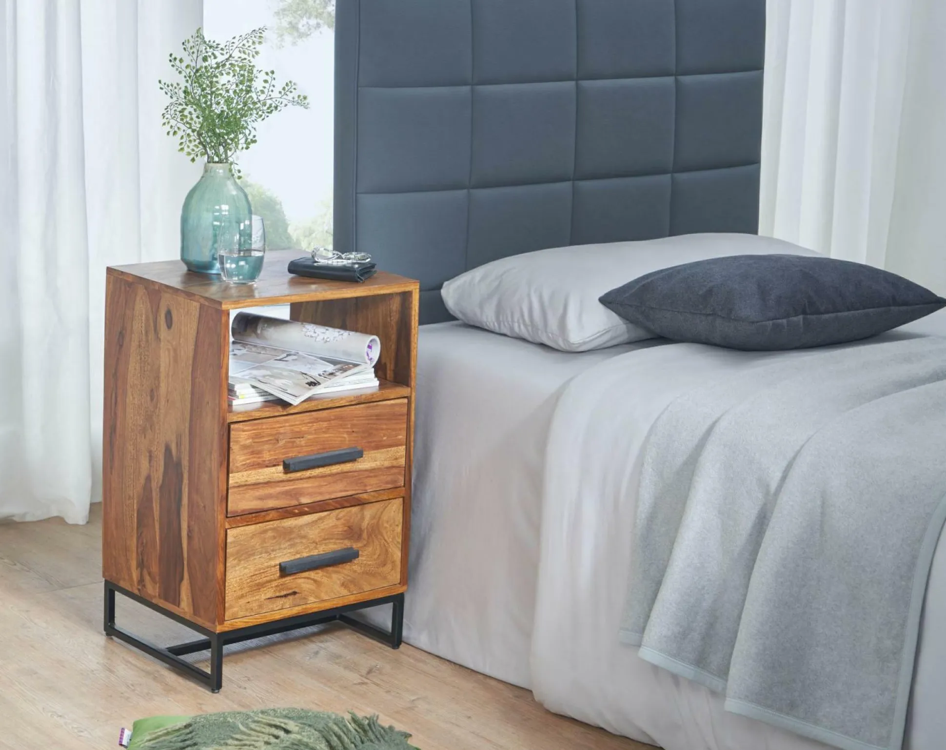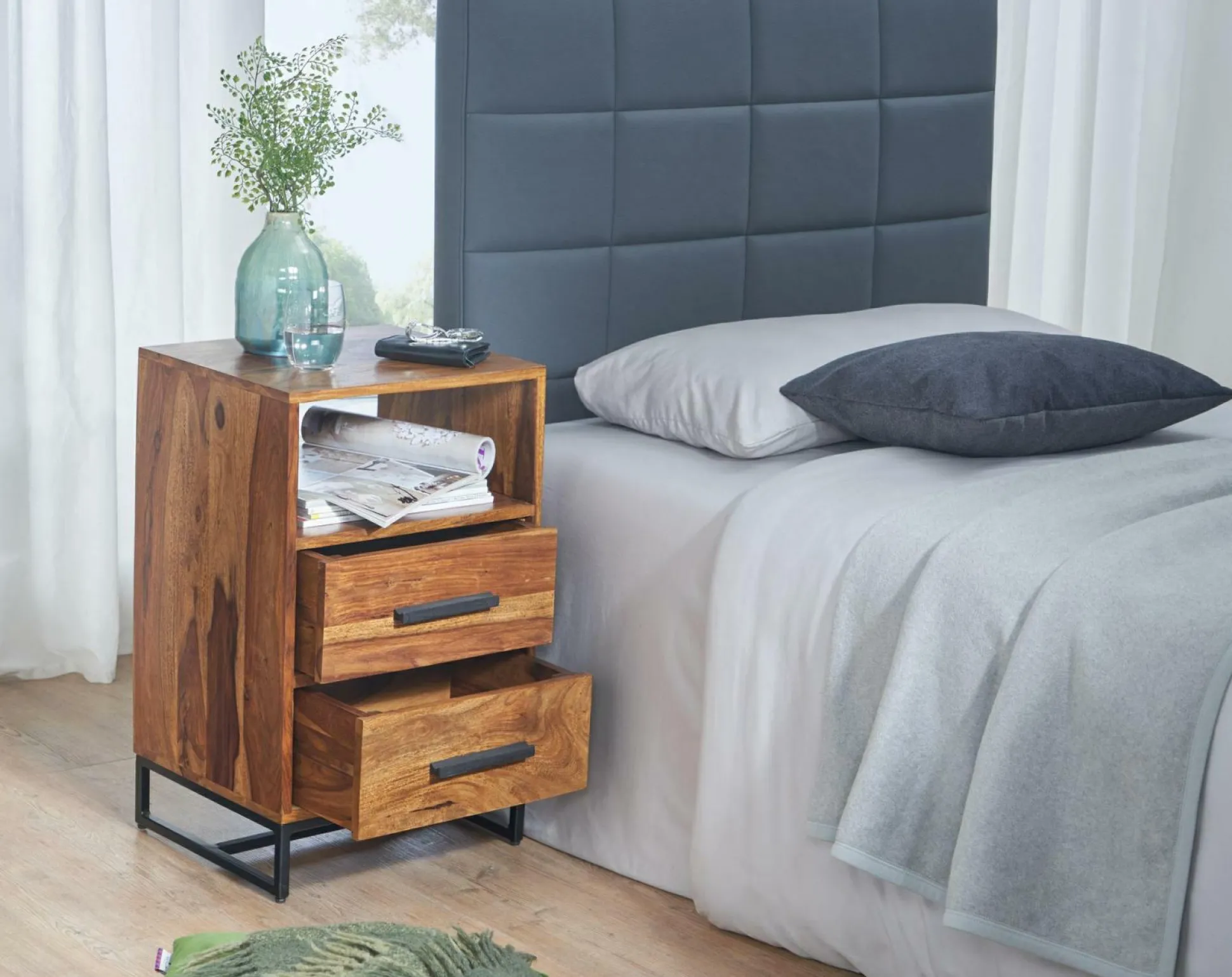 · Lieferumfang – Eine Nachtkommode ohne Dekoration.