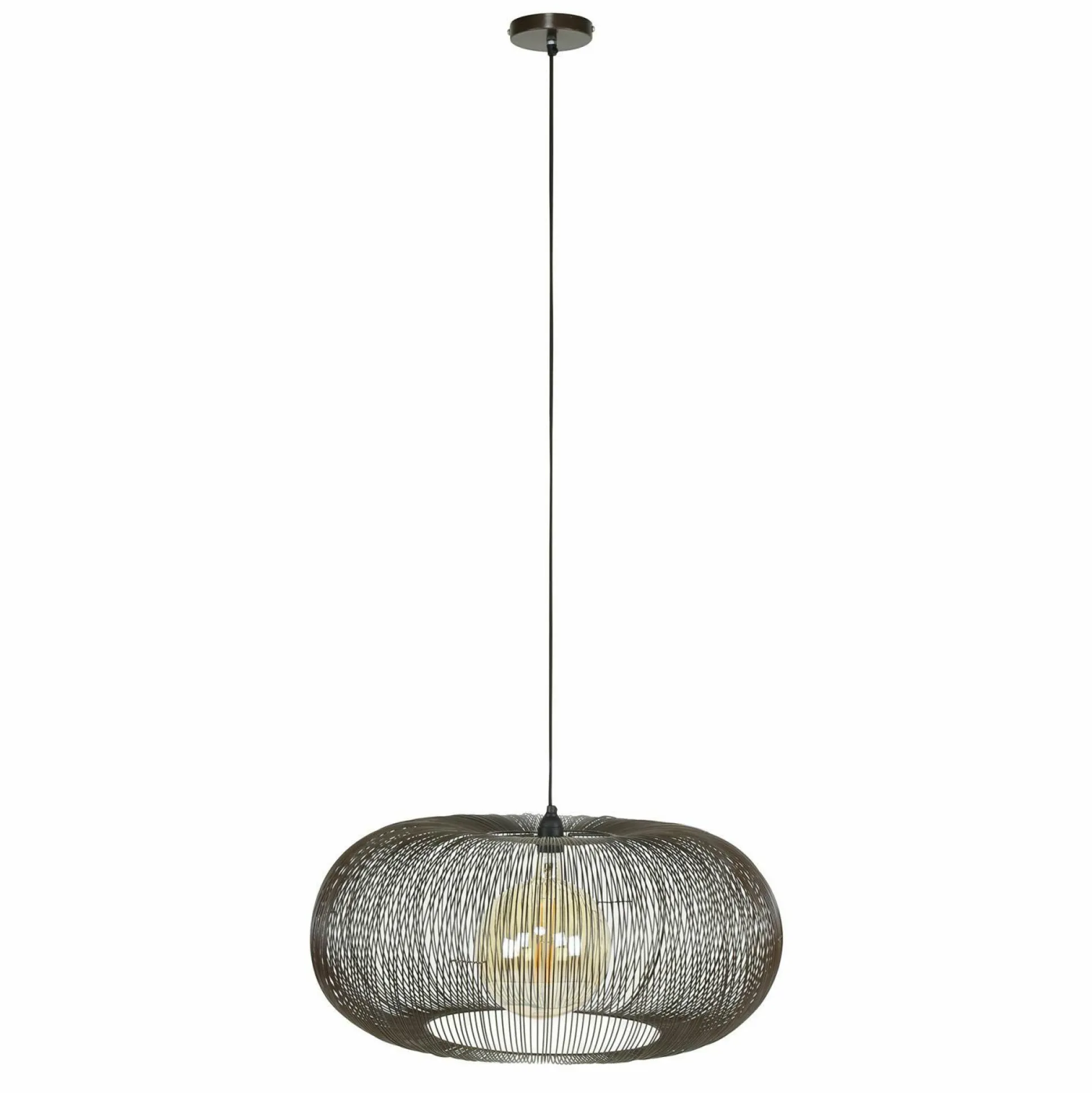 Für Ihr Zuhause ist diese Pendellampe eine gute Wahl. Die Hängeleuchte präsentiert sich in einem schönen Design und integriert sich wundervoll in jeden Bereich. Die Leuchte aus Metall misst in der Breite insgesamt 70 cm, weist eine Länge von 70 cm auf und verfügt über eine Höhe von 150 cm. Die tolle Innenlampe fügt sich mit ihrem schönen Design wunderbar in jeden Einrichtungsstil ein und kreiert dort eine angenehme Atmosphäre. Die Lampe besitzt eine E27-Fassung. Sie wird Ihnen viel Freude bereiten und lässt sich harmonisch in die unterschiedlichsten Dekorationsstile integrieren. Mit dieser Innenlampe können Sie eine wunderbare Atmosphäre schaffen.