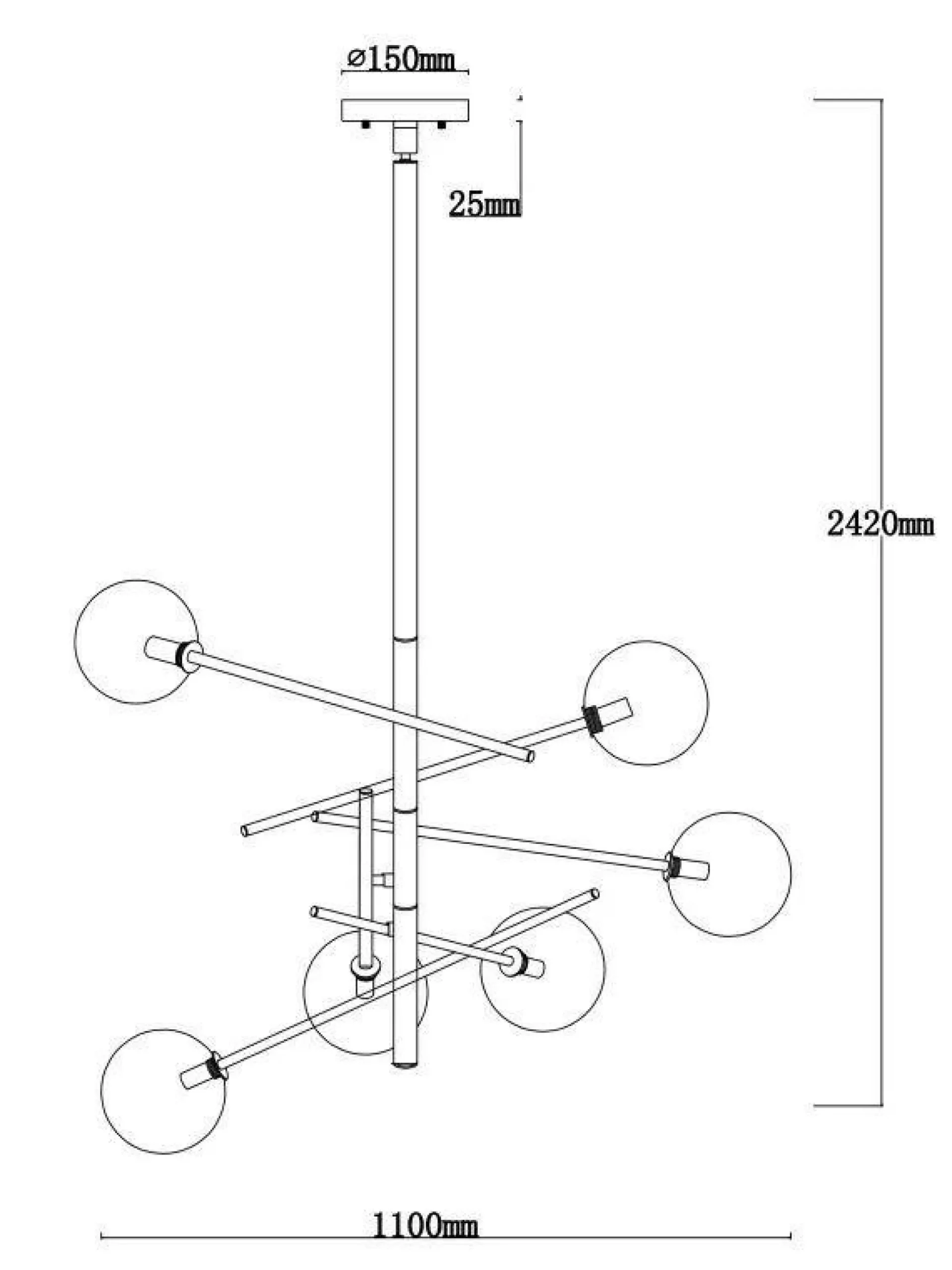 · Die Pendelleuchte Aksel ist eine moderne Deckenlampe der Marke Lucci Décor mit 6 Leuchten, die sich perfekt als Statement-Stück in jedem Raum eignet. Die Pendelleuchte Aksel hat eine Höhe von 1,30m und eine Breite von 1,10m. Die 6 Leuchten verfügen über einen G9 Sockel, das Leuchtmittel ist nicht im Lieferumfang enthalten.