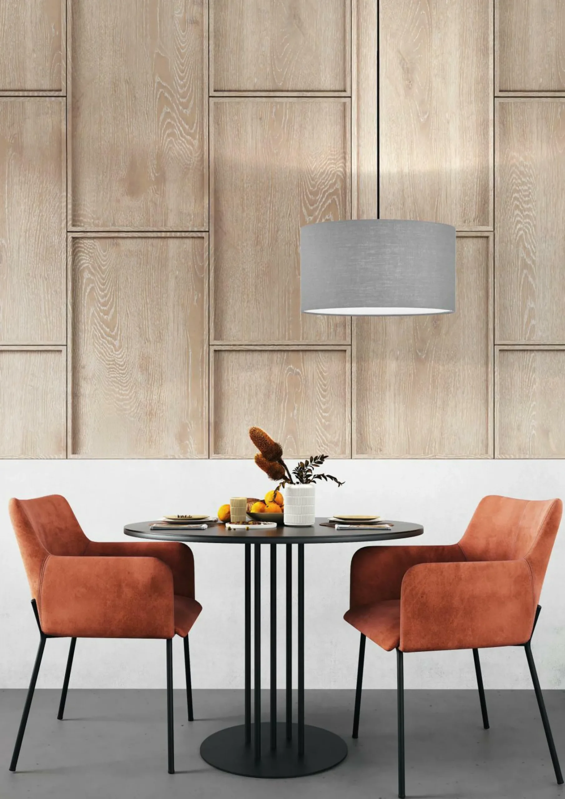 · STOFFSCHIRM – Der hochwertige graue Leuchtenschirm aus einem feinfaserigen Leinengewebe verleiht dieser eleganten Leuchte einen überzeugenden Auftritt in Haptik und Optik.