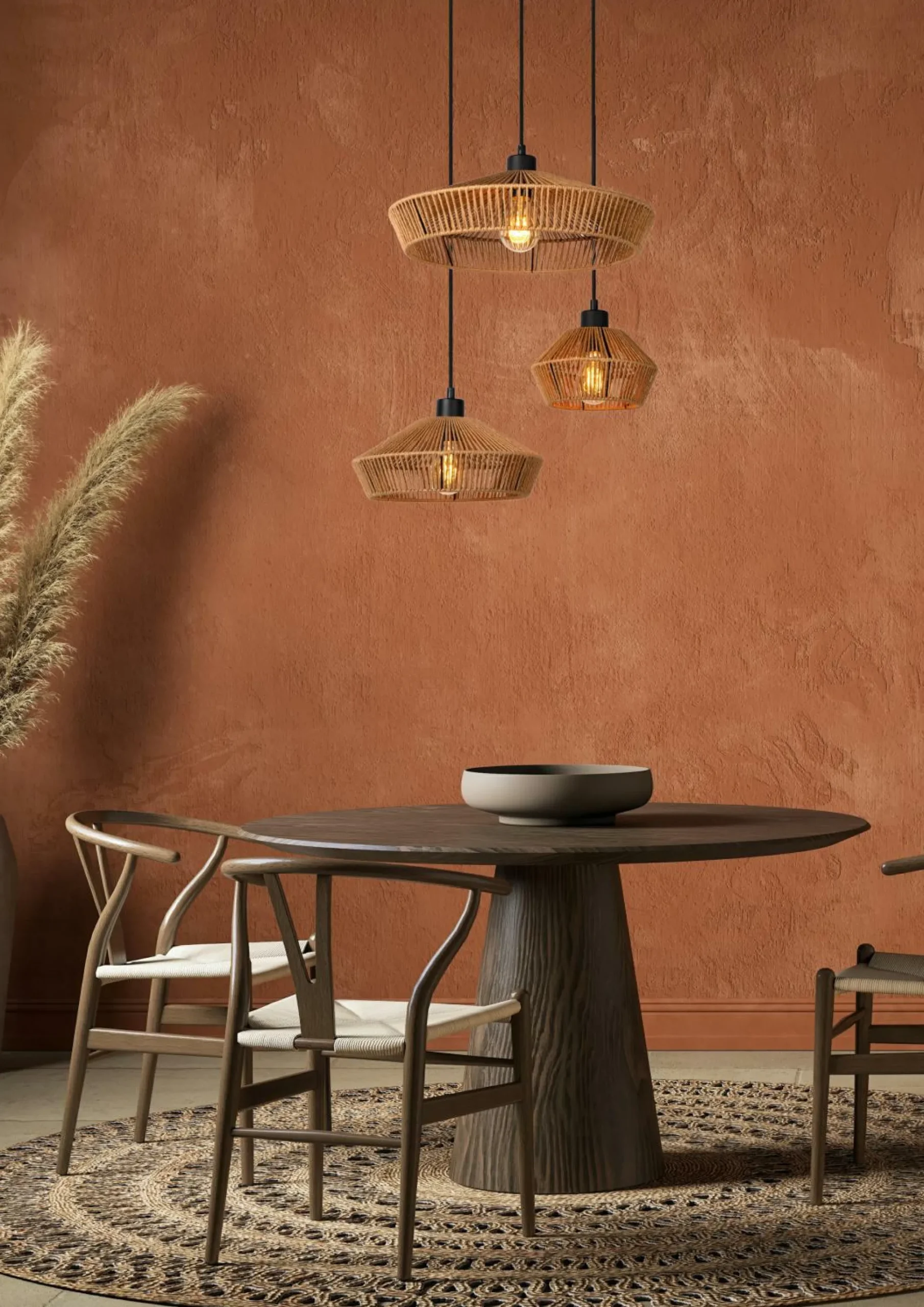 · Bringen Sie mit dieser Pendelleuchte aus gewebtem Papier einen Hauch von unverfälschter Natur in Ihr Zuhause. Installieren Sie Yunkai über einem Esstisch oder in einer gemütlichen Sitzecke, am besten umgeben von vielen Pflanzen. Drei Lampenschirme mit durchbrochenem Muster hängen in unterschiedlichen Höhen und verleihen Yunkai einen verspielten Look. Auch die unterschiedlichen Durchmesser sorgen für zusätzliche Aufregung. Yunkai ist bis zu einer maximalen Höhe von 145 Zentimetern verstellbar. Seine gesamte Breite beträgt 60 Zentimeter. Kombinieren Sie diese Pendelleuchte mit einem externen Dimmer, um die richtige Atmosphäre zu schaffen. Die ideale Komponente für einen gemütlichen Abend.