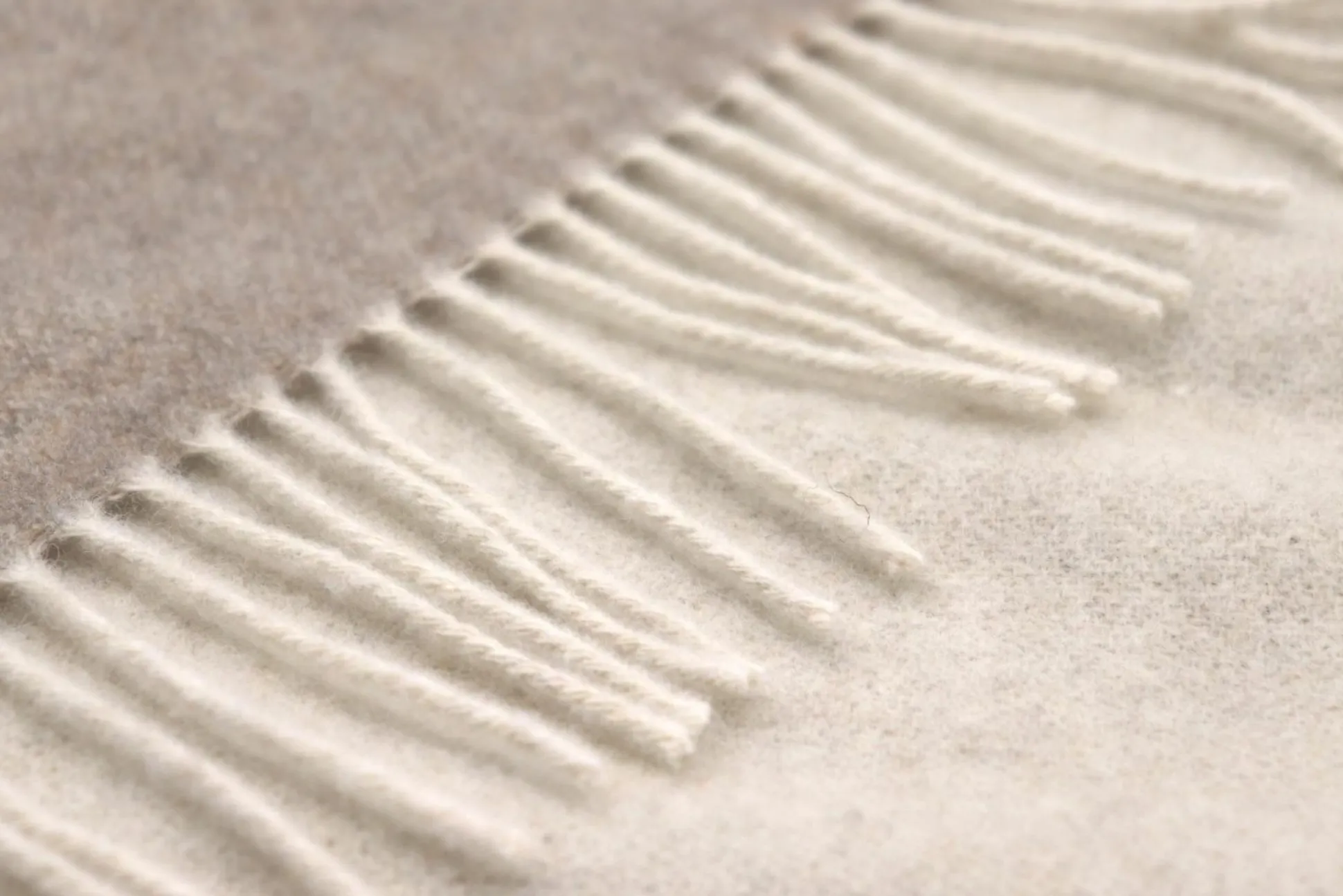 · Dieses luxuriöse Kaschmir-Plaid edlem Wolle-Kaschmir-Mix vereint Eleganz und Gemütlichkeit mit einem modernen Doubleface-Look in hellem Naturton. Die Fransen sind in demselben Ton gehalten wie die beigefarbene Rückseite. Das hochwertige, zweifarbige Plaid setzt elegante Akzente in der Einrichtung und wärmt wunderbar.