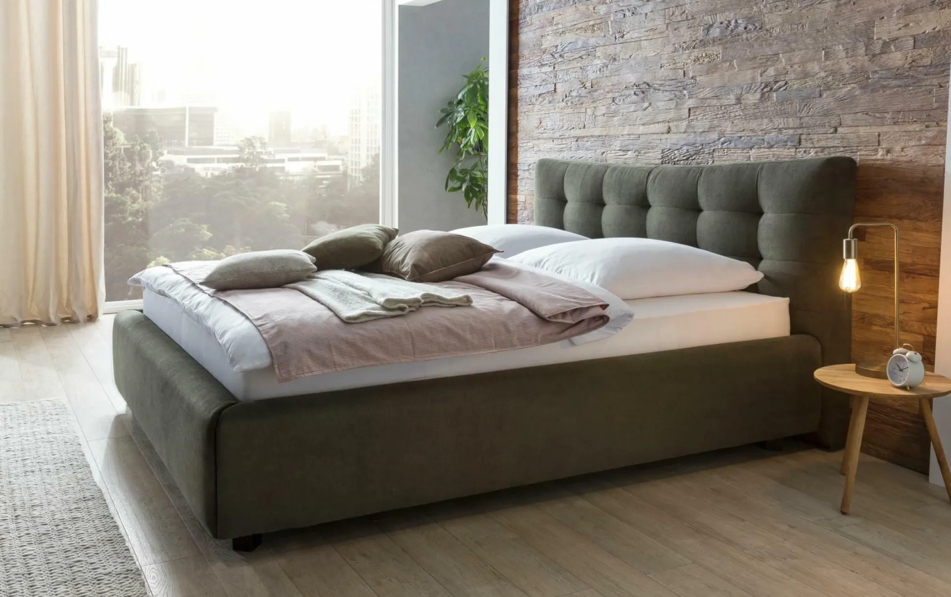 Machen Sie es sich bequem in dem Polsterbett Burgos und erschaffen Sie sich Ihre ganz eigene Wohlfühloase. Der Bezug besteht aus hochwertigem Napp Fleece, das mit seiner besonders feinen Struktur zu überzeugen weiß. Das Bettdesign sorgt für eine wohlige Atmosphäre, dass durch die versteckten Füße, die das Bett scheinbar zum Schweben bringen, gekonnt abgerundet wird. Ein Rahmen sowie Matratzen sind separat in unserem Online-Shop erhältlich.