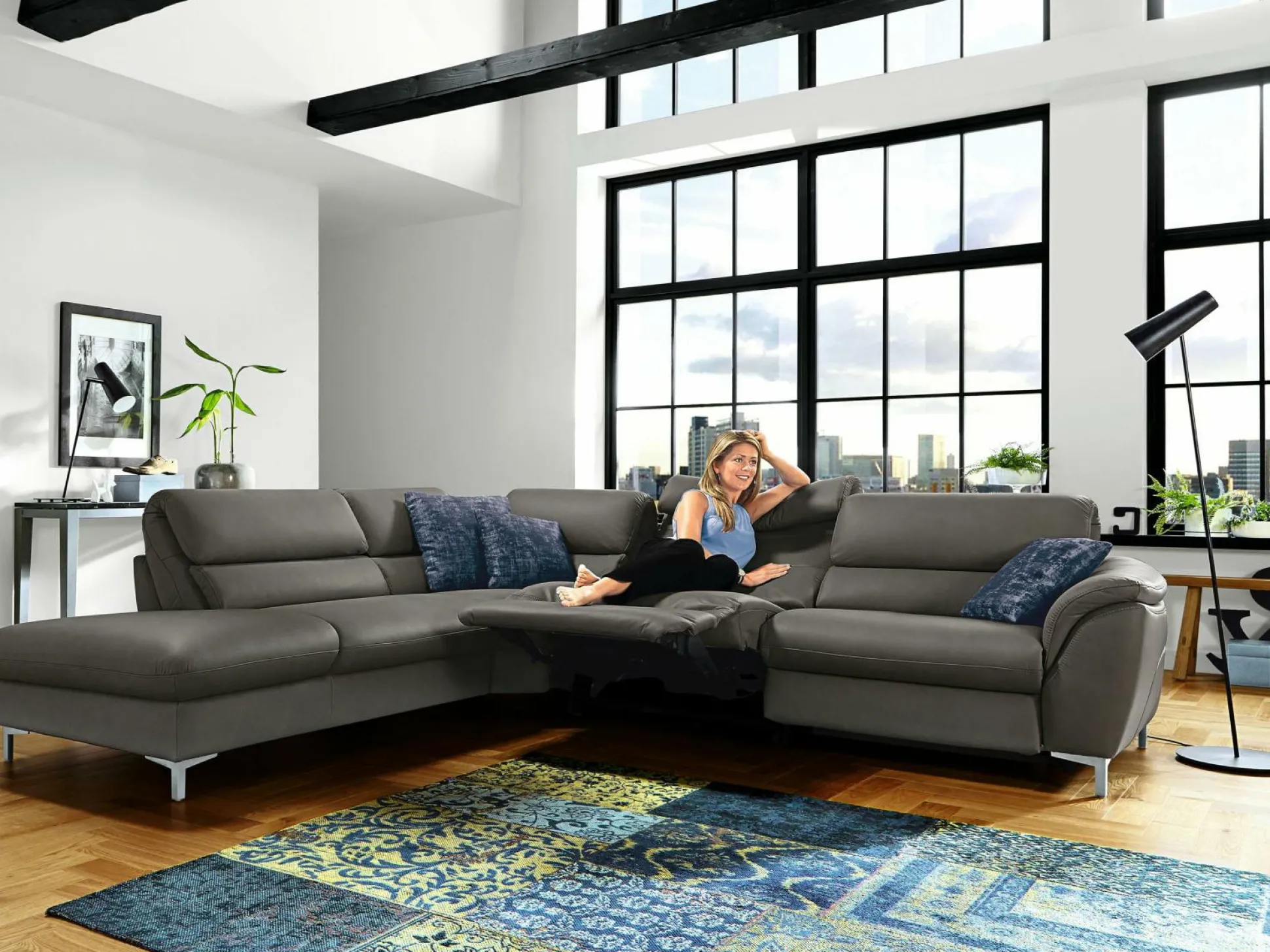 Die Polsterecke Bavero aus dem Hause Mondo vereint stilvolle Gestaltung mit bestem Sitzkomfort. Die dreiteilige Polsterecke besteht aus einem 2,5-sitzigen Sofa, einer Rundecke sowie einem 1,5-sitzigen Sofa und bietet somit reichlich Platz. Der Bezug aus Echtleder der Farbgebung Artischoke sorgt sowohl für eine eine edle Optik, als auch für ein angenehmes Sitzgefühl, welches durch die hochwertige Superflex-Polsterung mit Formkaltschaum weiter unterstützt wird. Für zusätzlichen Komfort sorgt die Kopfteilverstellung. Metallfüße aus Chrom runden das moderne Design ab.