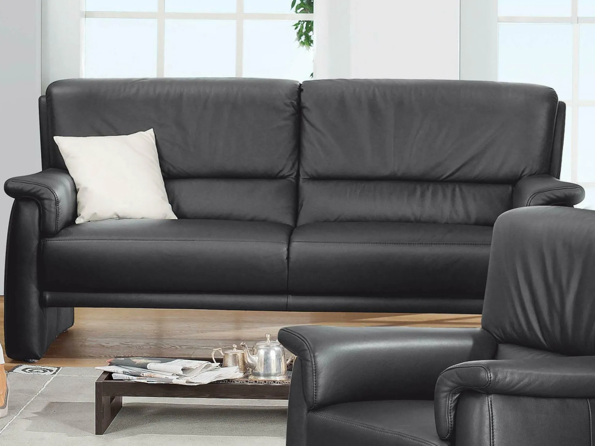 Bezug: Leder 71 Torro dkl.-grau bestehend aus: Sofa 2,5 Sitzer B ca. 163 cm Rücken Nessel, Sofa 2 Sitzer B ca. 143 cm, Variante W = SH ca. 41 cm, Sitz Superlastic med,, 9002,