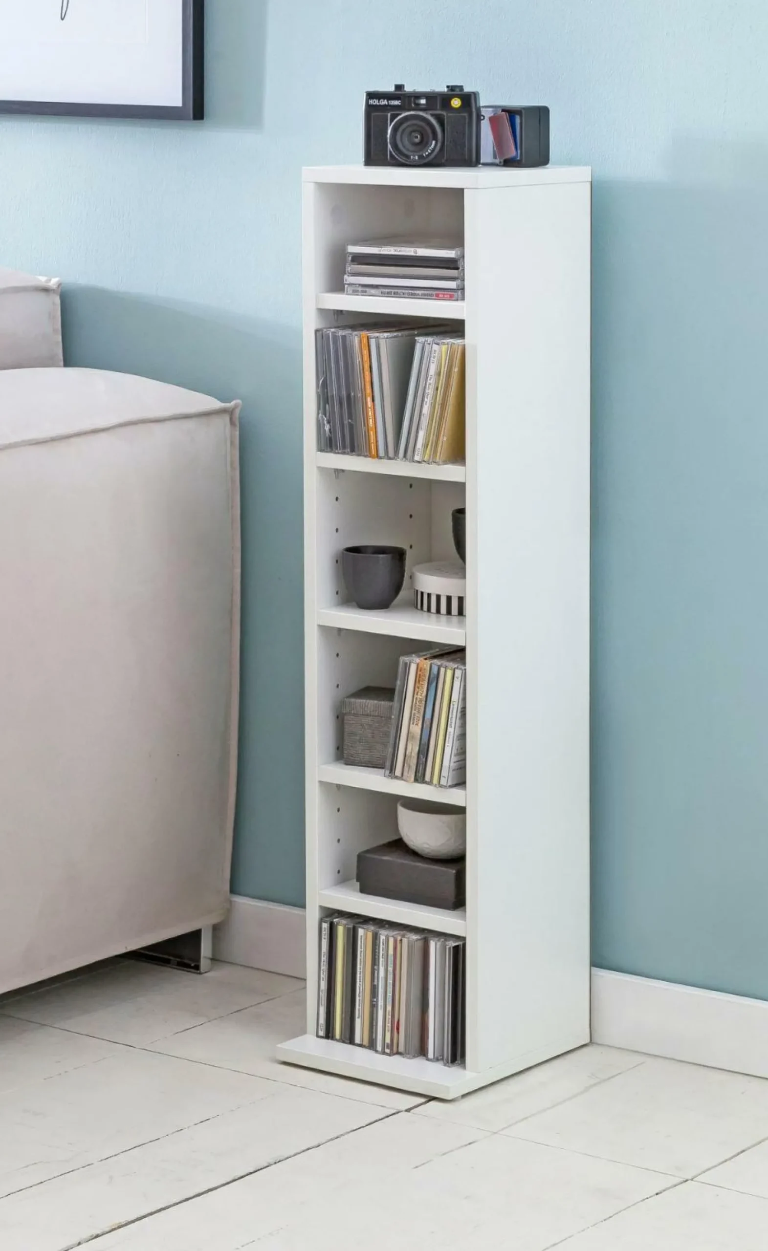 · Lieferumfang & Montage – Geliefert wird ein CD-Regal ohne Dekoration. Montageanleitung und Montagematerial sind im Lieferumfang enthalten.
