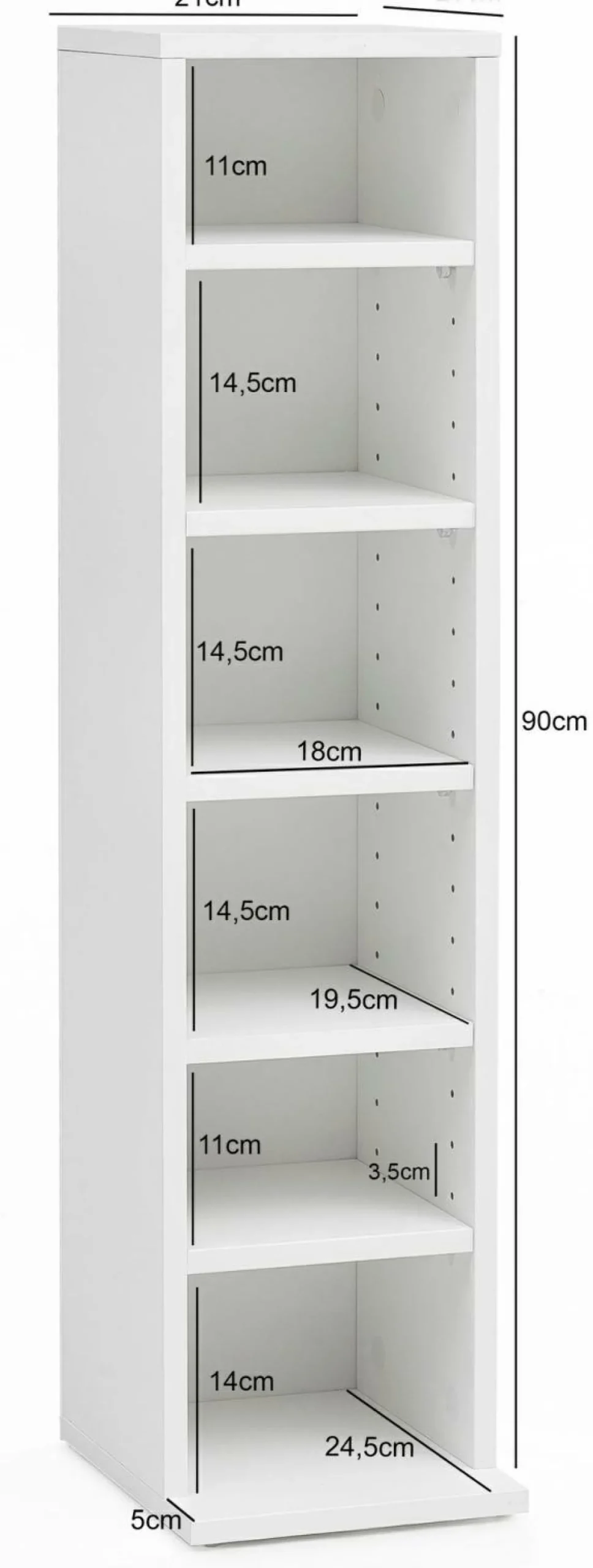 · Abmessungen – Innenmaße Regalfächer (BxHxT): 18 x 11-14,5 x 19,5 cm, Materialstärke: 1,5 cm.