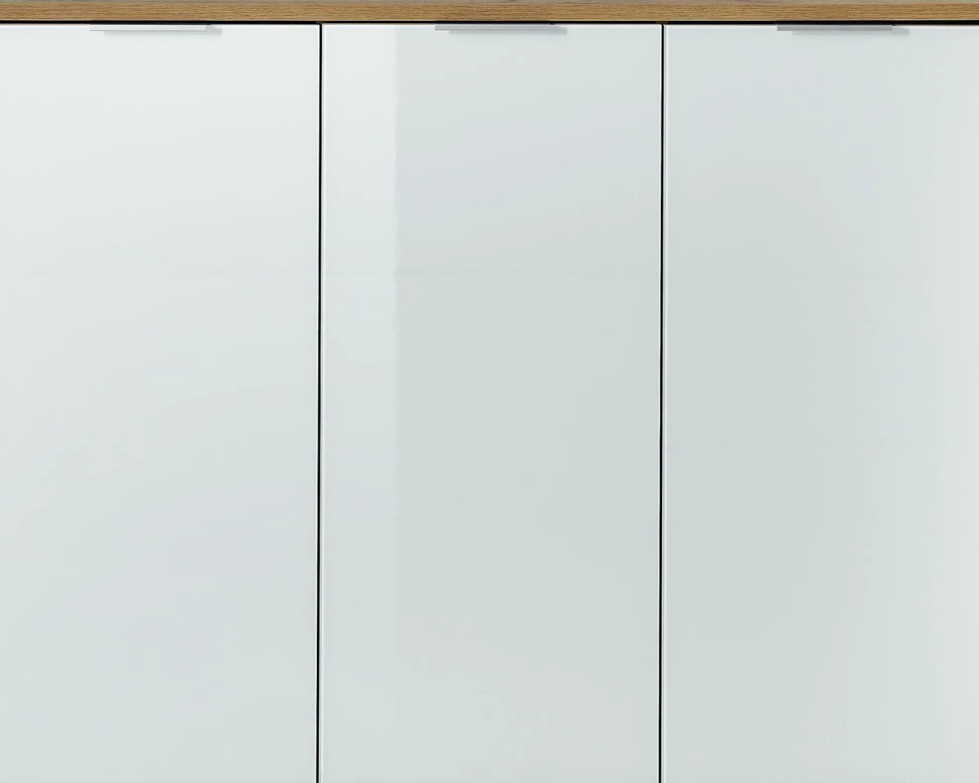· Schuhschrank mit drei Türen mit Glasfronten und Kantengriffen aus Metall, dahinter zwei Mittelseiten und zwölf verstellbare Einlegeböden (jeweils belastbar bis zu 10 kg), Oberboden (belastbar bis zu 10 kg), Korpus in Navarra-Eiche-Nachbildung, Fronten in Weiß-ESG, vier Kunststofffüße in Silber, drei Kantengriffe aus Metall, Platz für 30 Paar Schuhe, Melaminharzbeschichtung, Türdämpfung, Einscheibensicherheitsglas, hochwertige ABS-Kanten, Made in Germany.