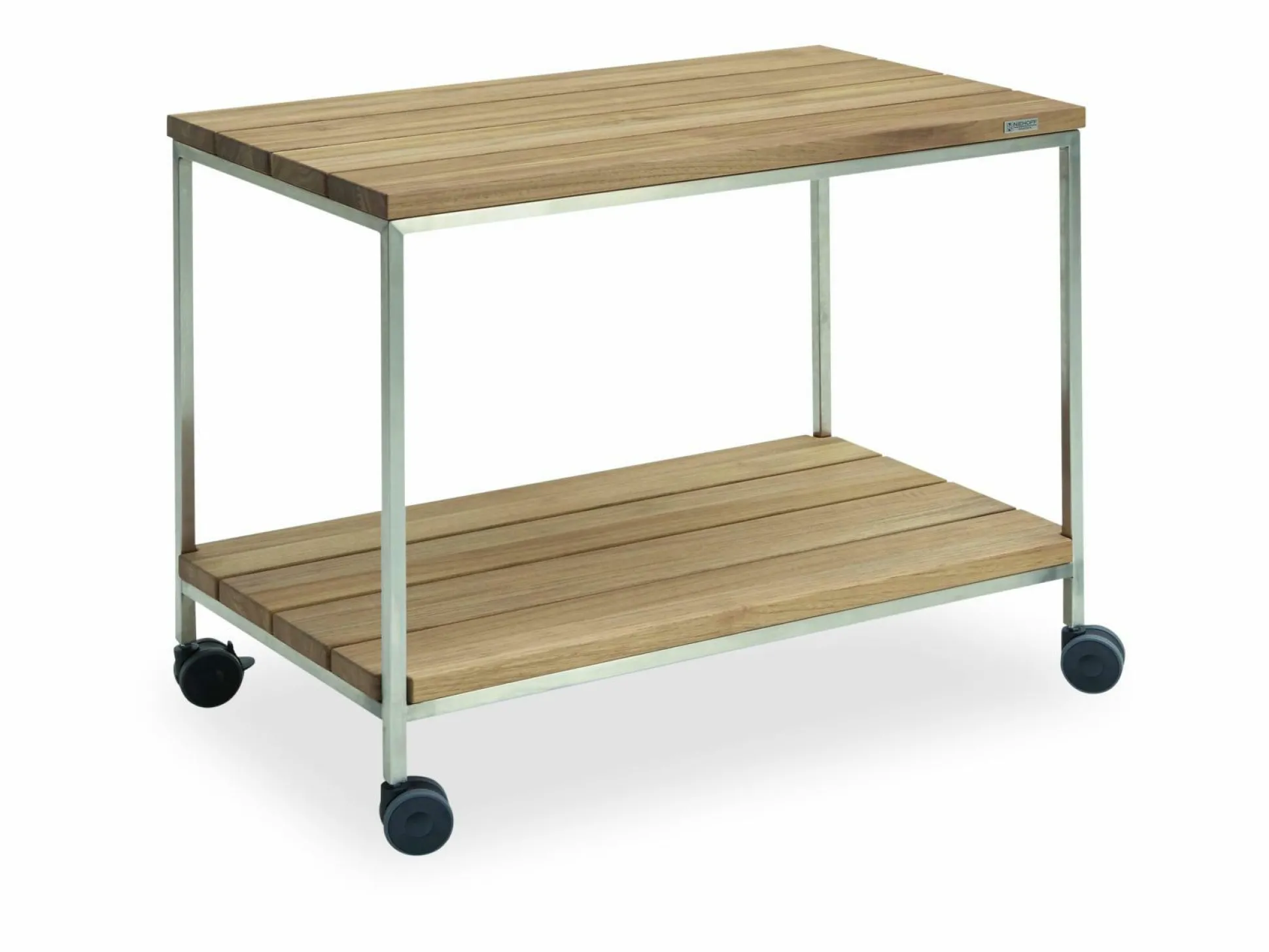 · Servierwagen NICOLA Ablagen Teak recycelt, Gestell Edelstahl gebürstet auf Rollen, 95×54 / 76 cm