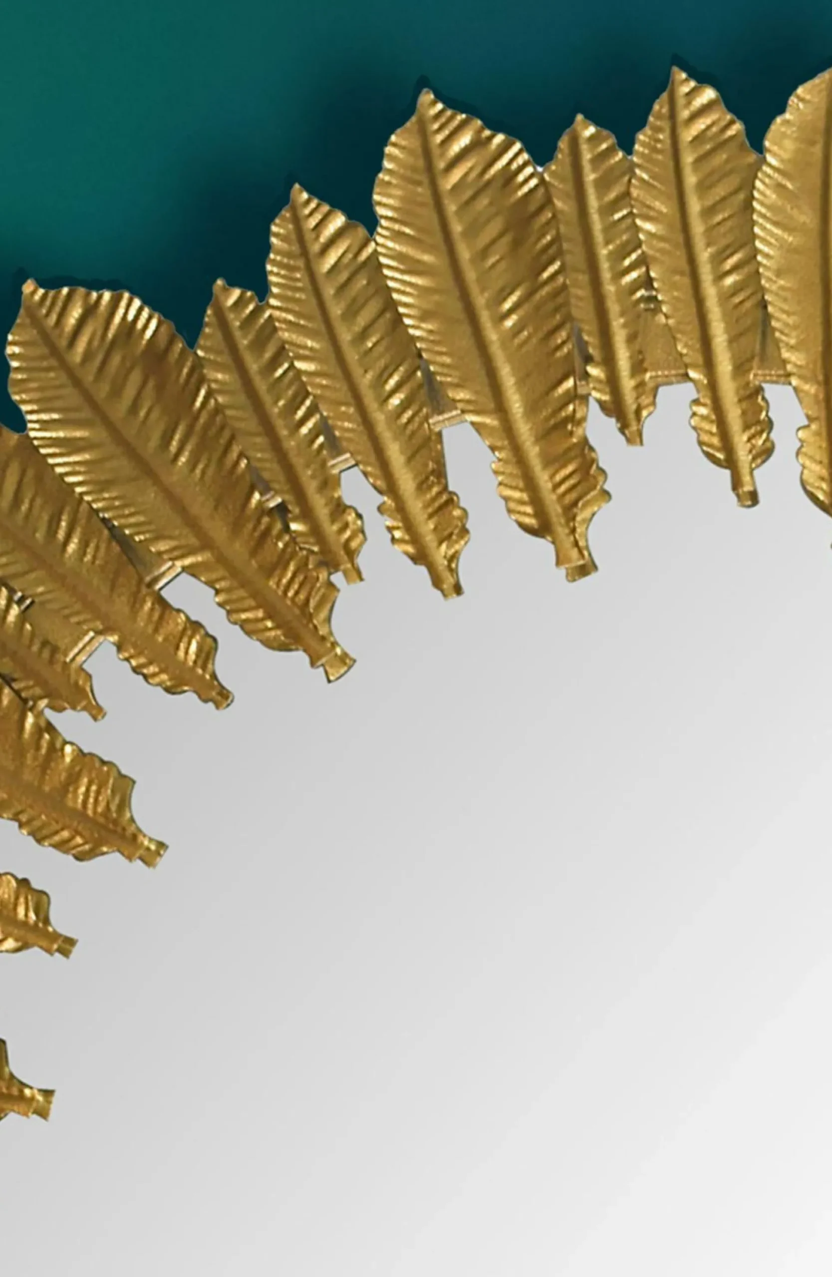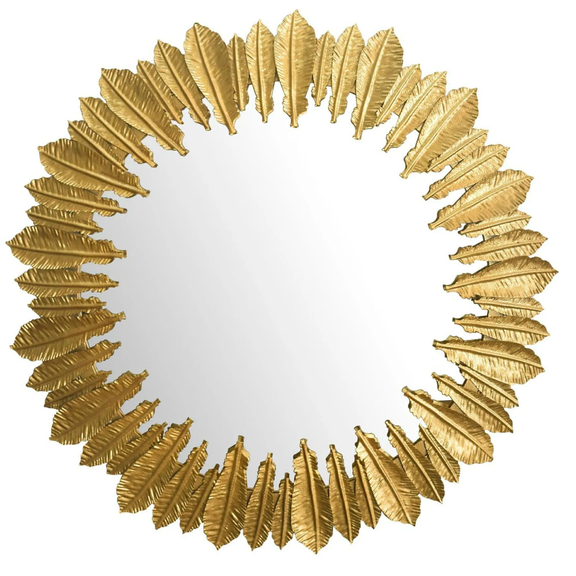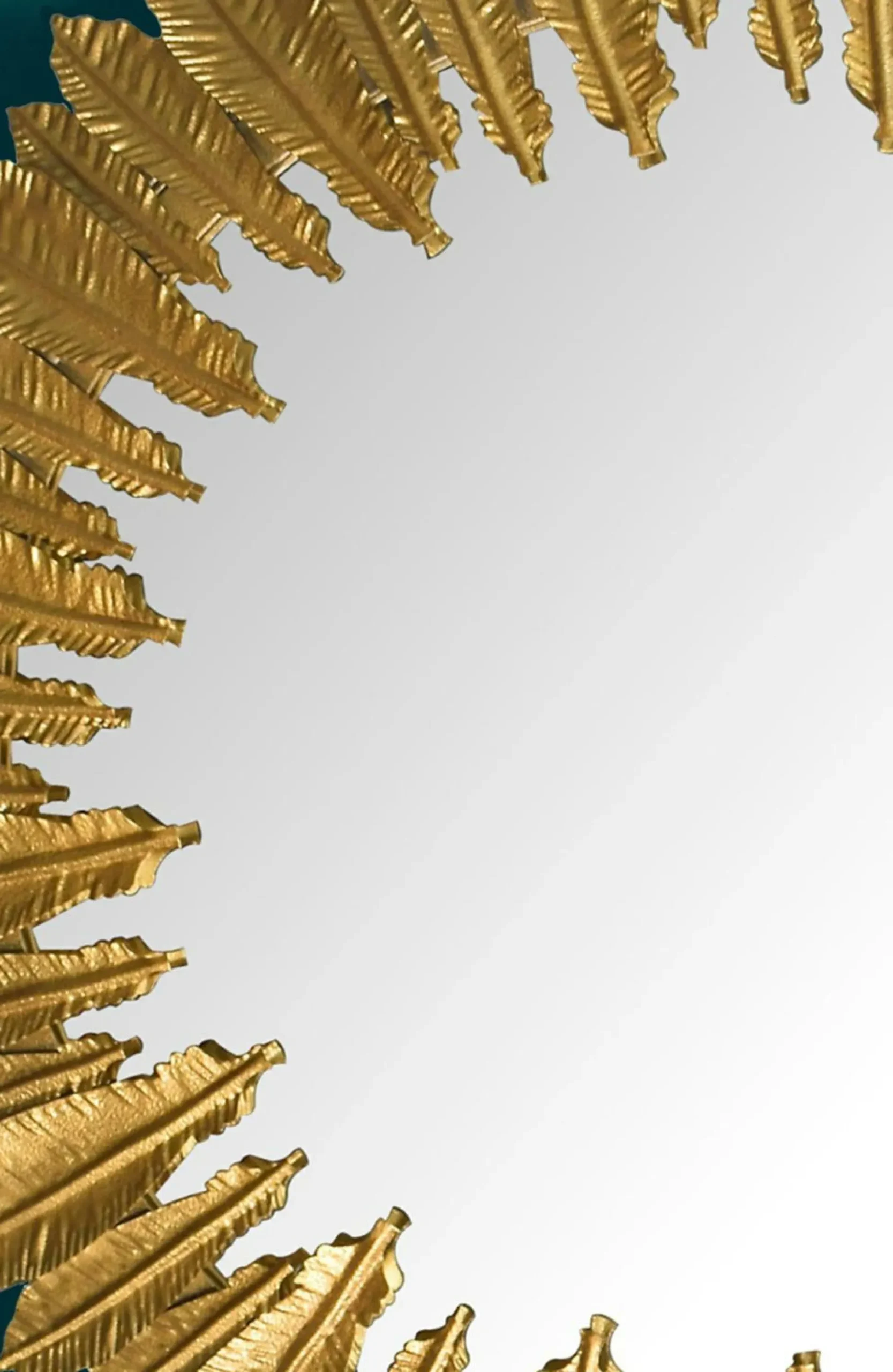 · Federpracht für die Wand – Setze einen eleganten Akzent mit unserem Wandspiegel, der von einer Umrahmung aus goldfarbenen Federn geziert wird.