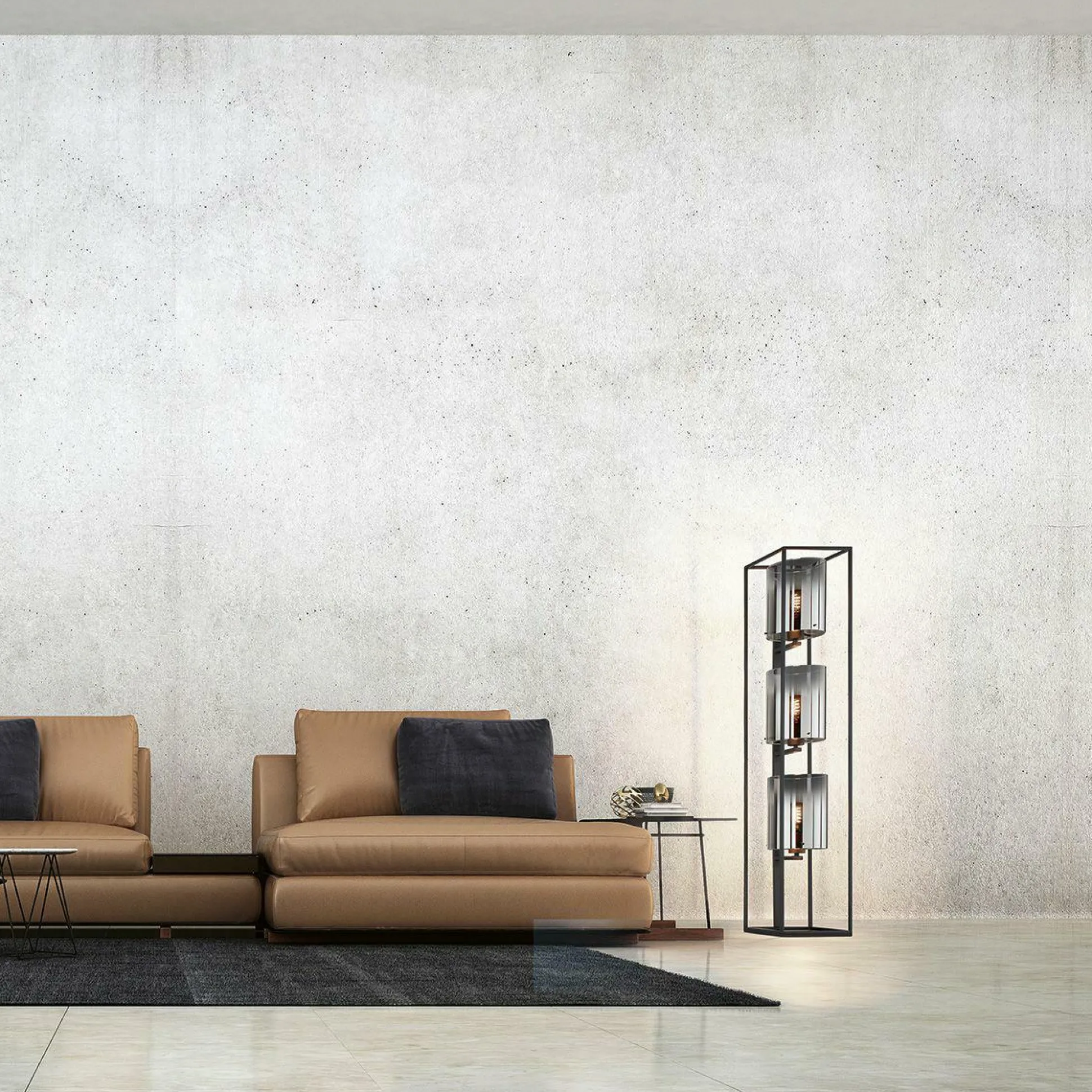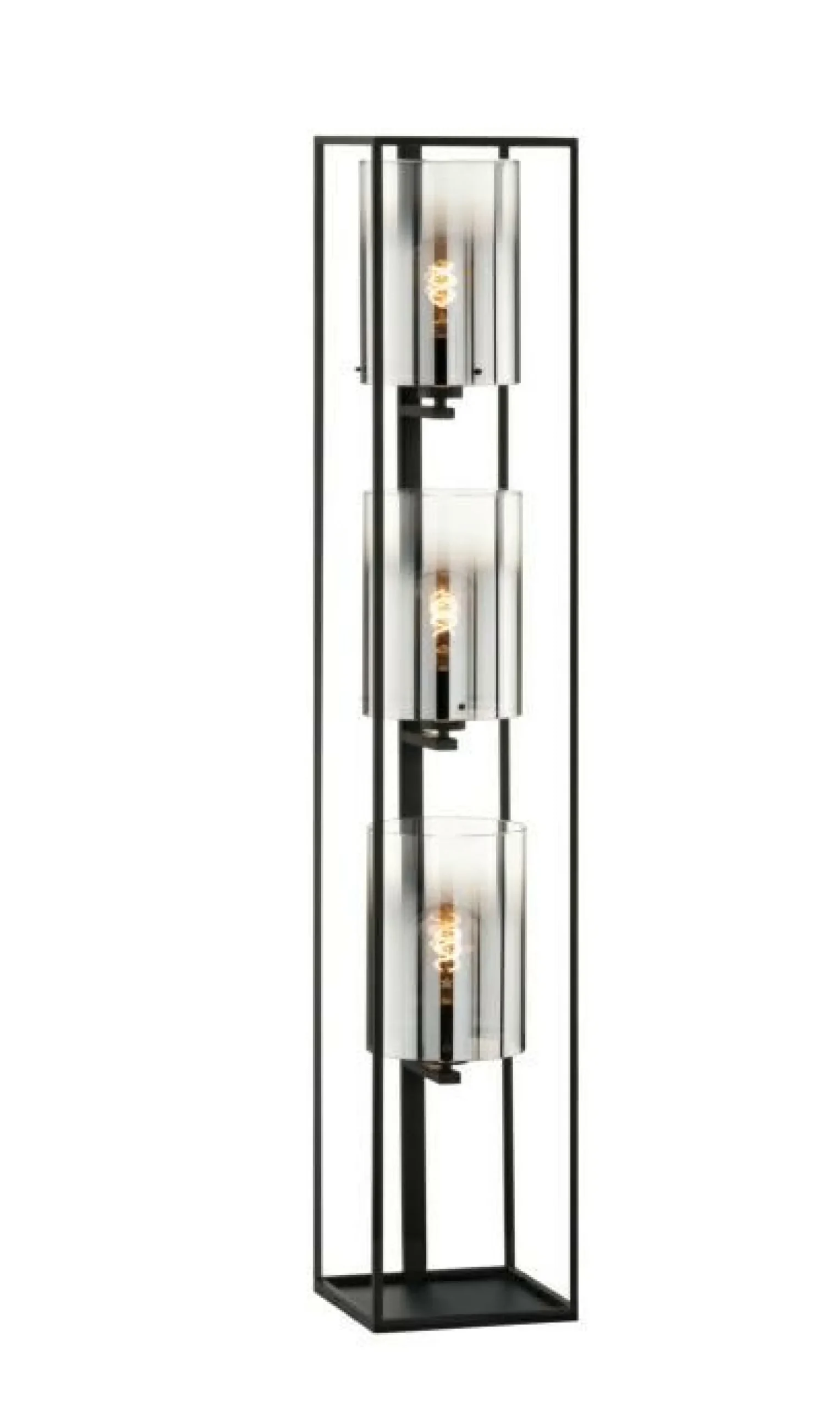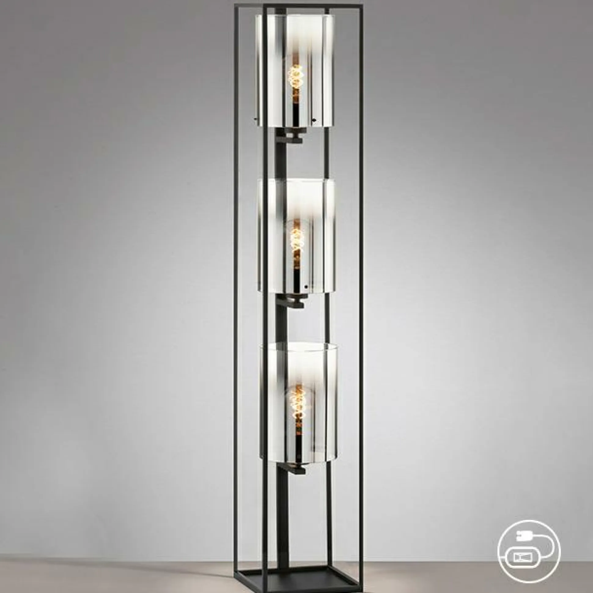 · RAUCHGLAS – Als Hauptdarsteller dieser Leuchte, wissen sich die Gläser in Szene zu setzen. An der unteren Hälfte noch klar, verschwimmt die Farbe sanft zu einem rauchigem schwarz/chrom Ton.