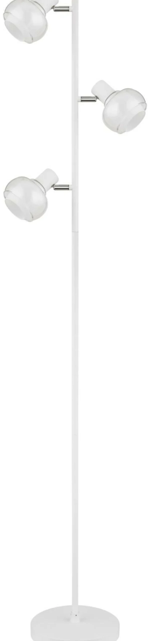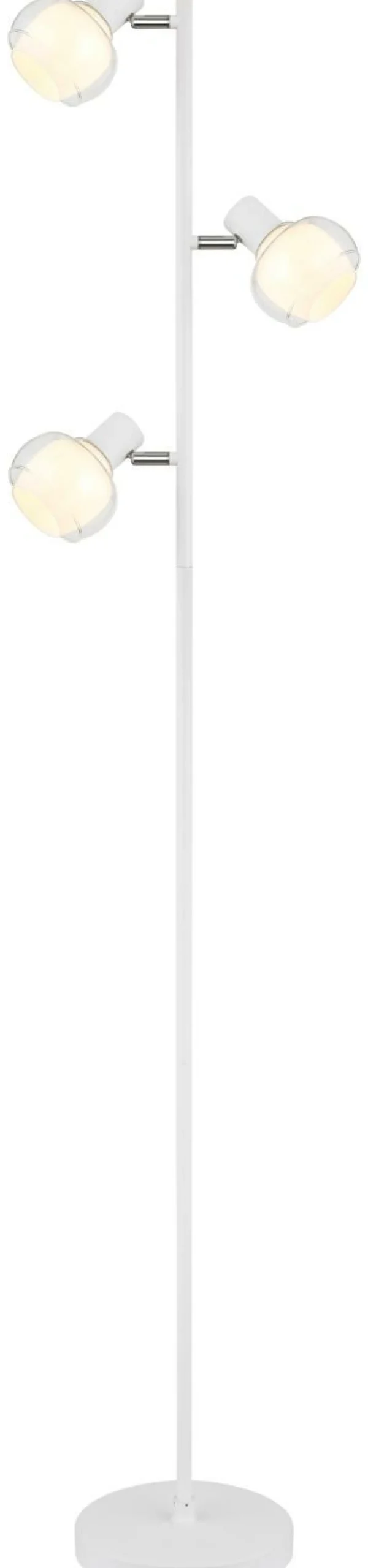 · Entdecken Sie die elegante Stehleuchte mit 3xE14 Fassungen! Mit ihrem zeitlosen Design und ihrer hochwertigen Verarbeitung wird diese Stehleuchte zum Blickfang in jedem Raum. Das matte weiße Metall harmoniert perfekt mit den verchromten Details und den klaren sowie opalen Glasakzenten. Das Kabel aus weißem PVC fügt sich nahtlos ein und bietet eine Kabellänge von 1800mm für flexible Platzierungsmöglichkeiten. Der praktische Fußtrittschalter im Kabel ermöglicht eine bequeme Bedienung. Mit den Maßen von 250x230x1540mm fügt sich diese Stehleuchte mühelos in jede Umgebung ein. Die E14 Fassung ermöglicht Ihnen bis zu einer maximalen Leistung von 40 Watt, selbst über Lichtfarbe und Helligkeit zu bestimmen. Bringen Sie stilvolles Ambiente in Ihr Zuhause!