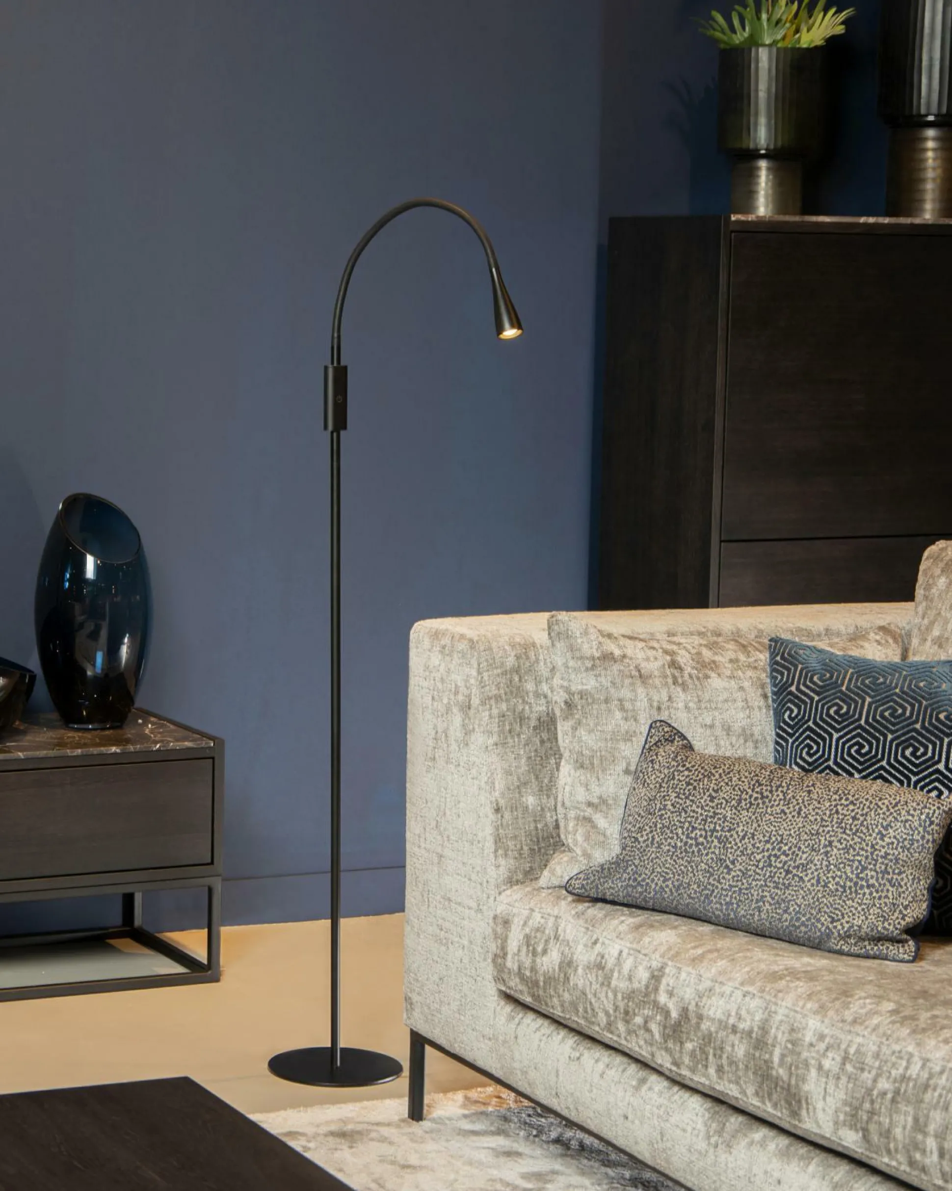 · Wo Stehlampen oft schwerfällig und unhandlich sind, ist Zozy der Inbegriff des Gegenteils. Ein federleichtes und schlankes Design auf einem ultradünnen Sockel macht diese Leselampe zur perfekten Lösung für alle, die Bücher und moderne Inneneinrichtungen lieben. Zozy ist 51 Zentimeter hoch und der flexible Lesearm kann leicht gedreht und gekippt werden. Sie verfügt außerdem über eine integrierte LED-Lichtquelle mit dimmbarem warmweißem Licht. Sie können Zozy mit dem Schalter direkt unter dem Arm ein- und ausschalten. Die Leuchte verfügt auch über einen Berührungsdimmer, der die Lichtintensität in drei Stufen regulieren kann. Lehnen Sie sich zurück, entspannen Sie sich und genießen Sie Ihr Buch.