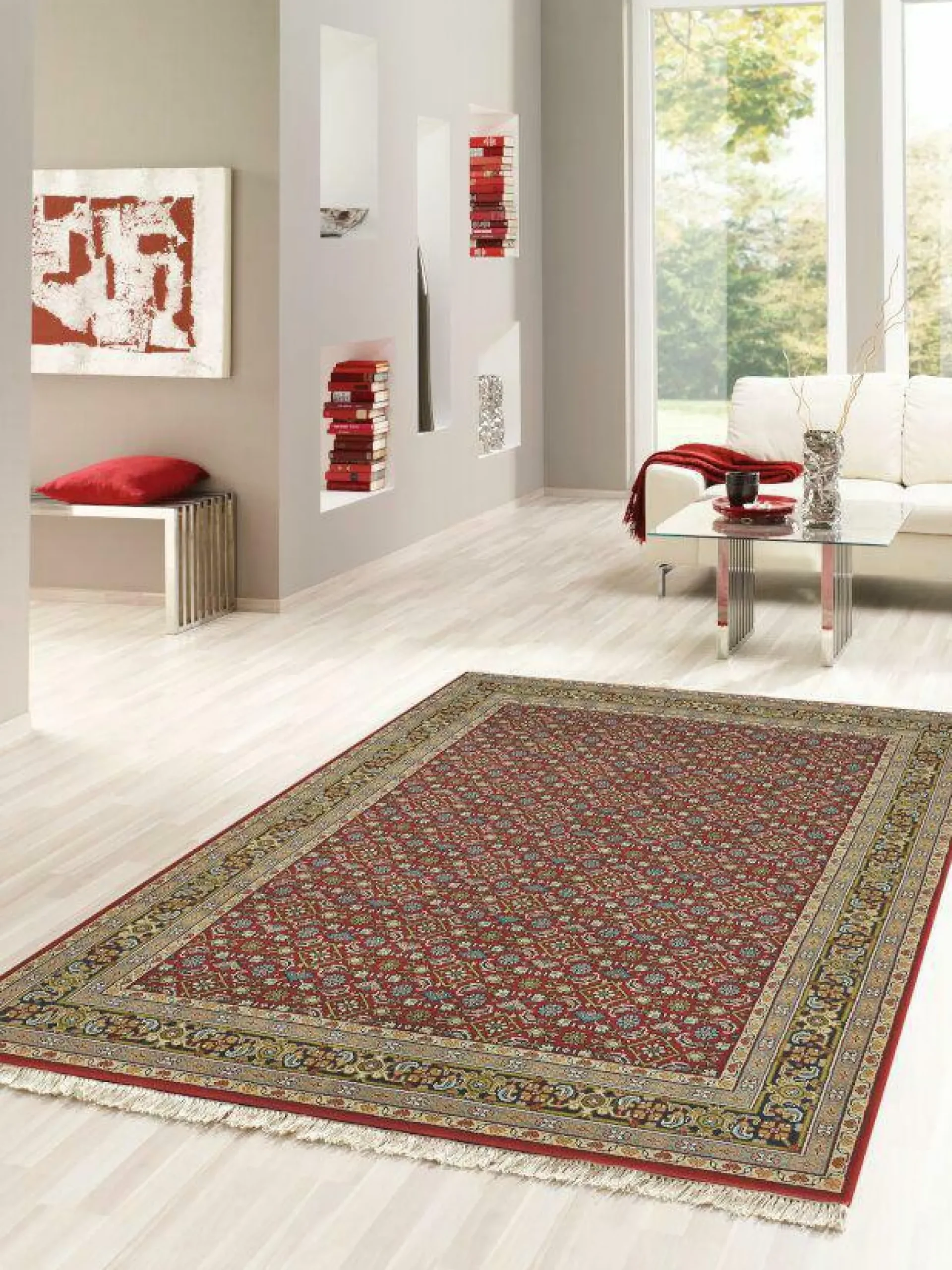 Jede Einrichtung lässt sich mit dem Teppich BENARAS im Handumdrehen gestalterisch aufwerten. Der Teppich ist wie dafür gemacht, den Wohnbereich in Ihrem Zuhause zu vervollständigen. Er kann auch optisch durch sein klassisches Design überzeugen. Der Teppich aus Schurwolle besitzt eine Länge von 160 cm sowie eine Breite von 90 cm. Der wunderschöne Teppich hat ein zeitloses Design und schenkt Ihrer Einrichtung ein wohnliches Flair. Der Teppich BENARAS setzt einen attraktiven Akzent in Ihrem Zuhause.