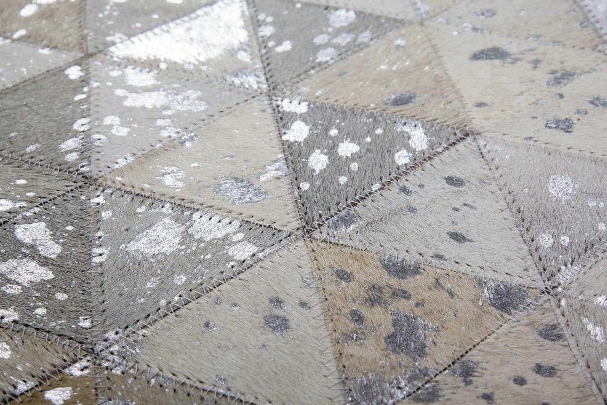 · Metallische Applikationen auf echtem Leder mit weichem Haar zeichnen diesen Teppich aus. Holen Sie sich den individuellen Hingucker nach Hause und Ihre Besucher werden staunen. Basis des Lederteppichs im Patchwork-Design bilden verschiedene Nuancen eines Farbtons. Die aufgedruckte metallische Folie ist der besondere Clou des Teppichs, setzt Akzente und lässt den Teppich strahlen. Es gibt keine identischen Tierfelle. Ebenso ist jeder einzelne dieser Lederteppiche durch natürliche Abweichungen in Größe, Farbgebung, Muster und Struktur einzigartig. Die Unikate werden durch das Folien-Dekor in bunten Farben, Gold oder Silber abgerundet. Aus dem Naturmaterial Leder wurde in liebevoller Handarbeit ein hochwertiger Teppich hergestellt, der neben seiner Widerstandsfähigkeit und Robustheit auch dadurch glänzt, dass er lichtecht und einfach zu reinigen ist. Weicher Filz schließt die Unterseite des Lederteppichs ab und unterstützt die Wärmeisolierung und Geräuschdämmung. Auch Räume mit Fußbodenheizungen sind für den Teppich kein Problem.In Kombination mit attraktiven Lederkissen, platziert auf Ihrer Couch oder dekorativ auf Stühlen, schaffen Sie ein gelungenes Gesamtkonzept. Das natürliche Fell kann nach einiger Zeit und bei hoher kann Beanspruchung gegebenenfalls an Haaren verlieren. Ebenso könnte sich der Foliendruck an einigen Stellen lösen. Dies ist dem Naturprodukt geschuldet und kein Qualitätsmangel oder Produktionsfehler.