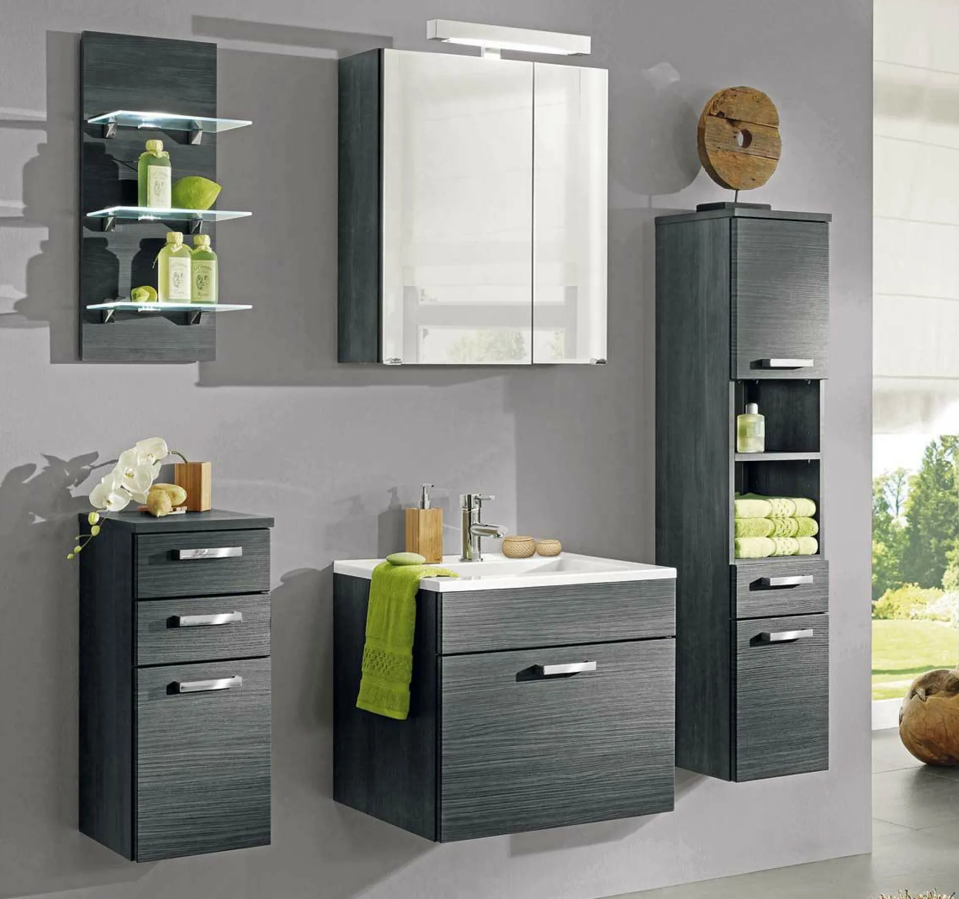 Platzprobleme im Badezimmer werden durch den schicken Midischrank Malaga beseitigt.