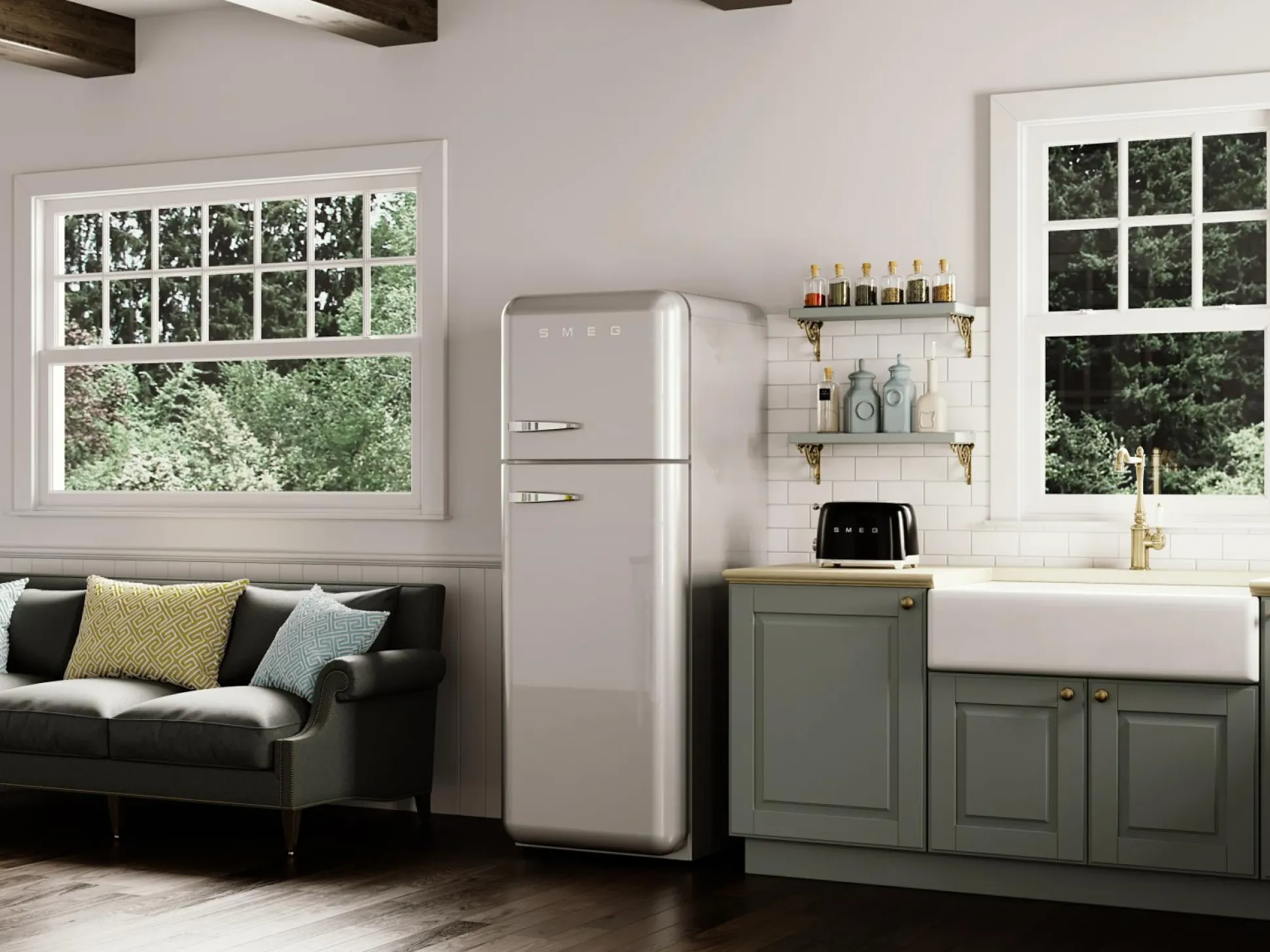 Schickes Retro-Design und tolle Funktionen: der Kompakt-Toaster von SMEG steht für beste Qualität und einfache Handhabung. Insgesamt besteht der Toaster aus lackiertem Edelstahl in Schwarz und verfügt über zwei breite Toastschlitze mit Platz für zwei Toastscheiben. Mit sechs Röstgradstufen ausgestattet, können Sie zwischen drei Automatikprogrammen wählen: Aufwärmen, Auftauen und Bagel. Sowohl der Bedienknebel für Röstgradstufen als auch die Drucktasten für die Auftau-/ Bagel-Funktion sind beleuchtet. Zudem werden die Toastscheiben automatisch zentriert und nach Röstende ausgeworfen. Besonders vorteilhaft ist die herausnehmbare Krümelschublade, durch die Sie das Gerät gut säubern können und die rutschfesten Stellfüße sind auch sehr nützlich. Neben vielen Vorteilen ist der Toaster durch den Retro-Stil ein echter Hingucker.