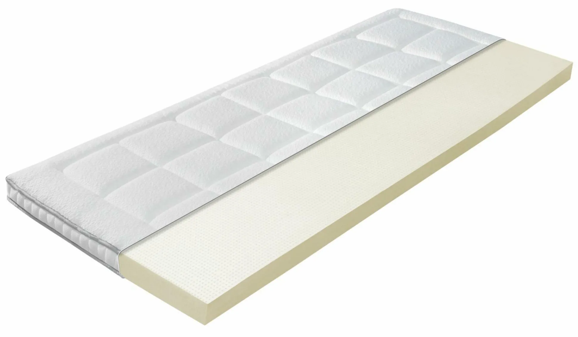 · Drucksensible Körperkonturanpassung und optimale Durchlüftung durch eine 40 mm hohe durchlochte Latexplatte.