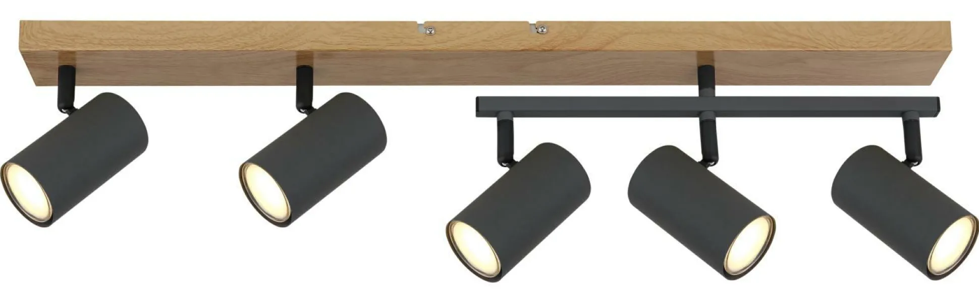 · Dieser wunderschöne Strahler begeistert durch tolles Design. An einer 70cm langen holzfarbenen Stange befinden sich zwei GU10 Fassungen mit beweglichen Gelenken und drei weiteren GU10 Fassungen mit einer zusätzlichen beweglichen Stange in Graphit. Die GU10 Fassungen ermöglichen Ihnen die freie Auswahl, bis zu einer maximalen Leistung von 35 Watt, Ihrer Leuchtmittel
